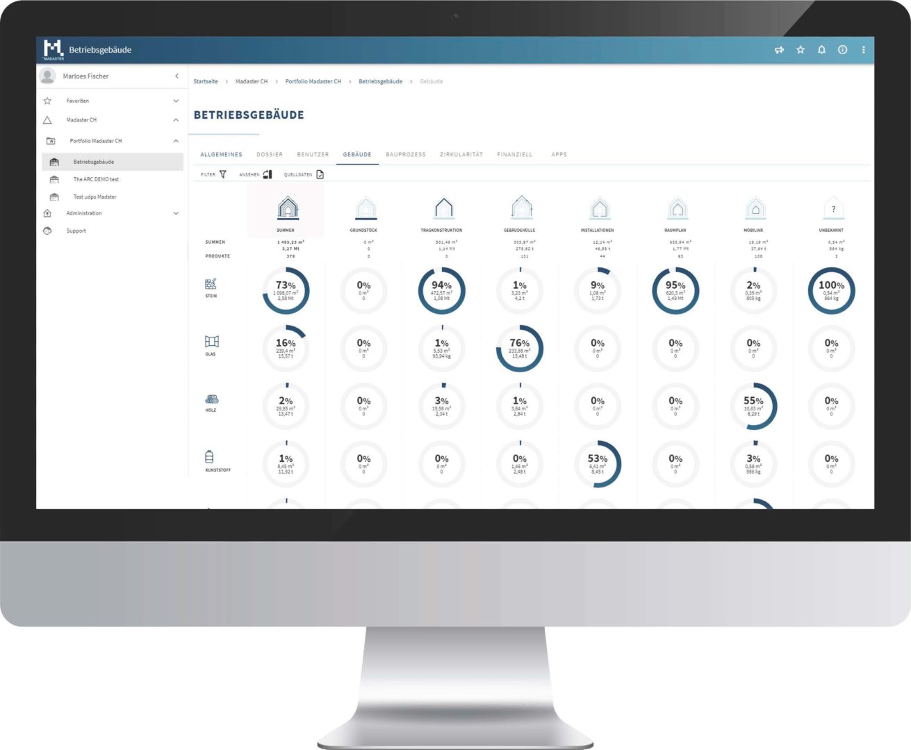 Auf der Online-Plattform können Liegenschaftseigentümer ihre Gebäude registrieren. Produkt- und Materialdaten werden gespeichert und visualisiert. Dieses digitale Dossier macht alle Merkmale von Produkten und Materialien im Gebäude, deren Hersteller sowie ihren Standort transparent. Durch die Anbindung von externen Datenquellen und mithilfe von Datenanalyse-Tools werden diese kategorisierten Daten angereichert und in einem Materialpass zusammengeführt. Er erleichtert auch die Erstellung des obligatorischen Entsorgungskonzept gemäss Schweizer Abfallverordnung (VVEA), das die ordnungsgemässe Behandlung von Bauabfällen dokumentiert.