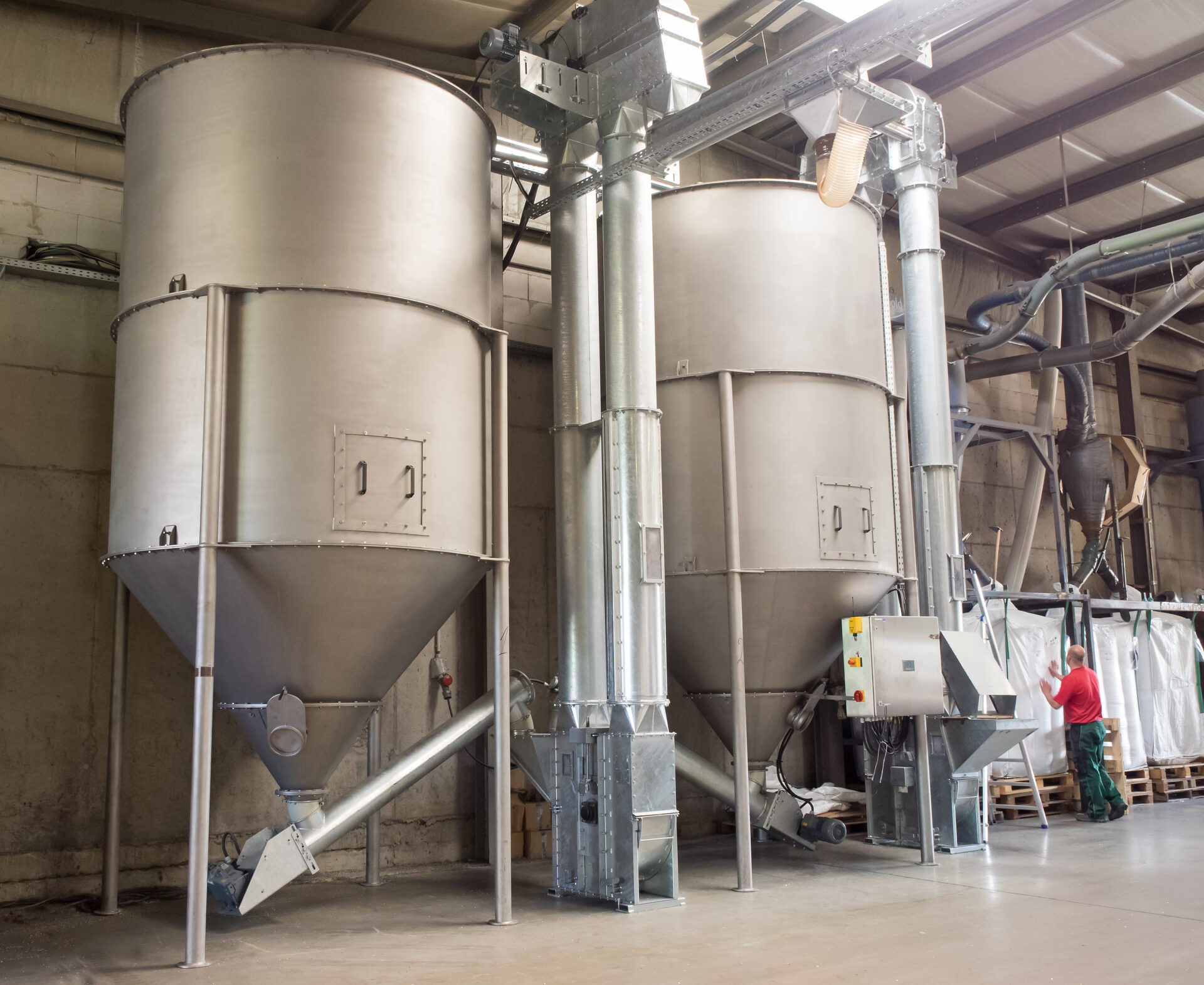Die Materialzufuhr erfolgt mittels Sackaufgaben in einen Becherelevator mit Hochleistungsbechern. In Folge beschickt die Zuführschnecke die beiden Vertikalmischer über den Produkteinlauf im Deckel. Entladen werden die Mischsilos über den Bodenauslauf via Austragsschnecke, Becherelevator und Trogschnecke in eine Big Bag-Station. Alternativ ist eine LKW-Verladung möglich. Angepasst an die bestehende Produktion wird die Anlage manuell gesteuert. Das gleichzeitige Befüllen des einen und Abziehen des zweiten Mischsilos ist möglich.