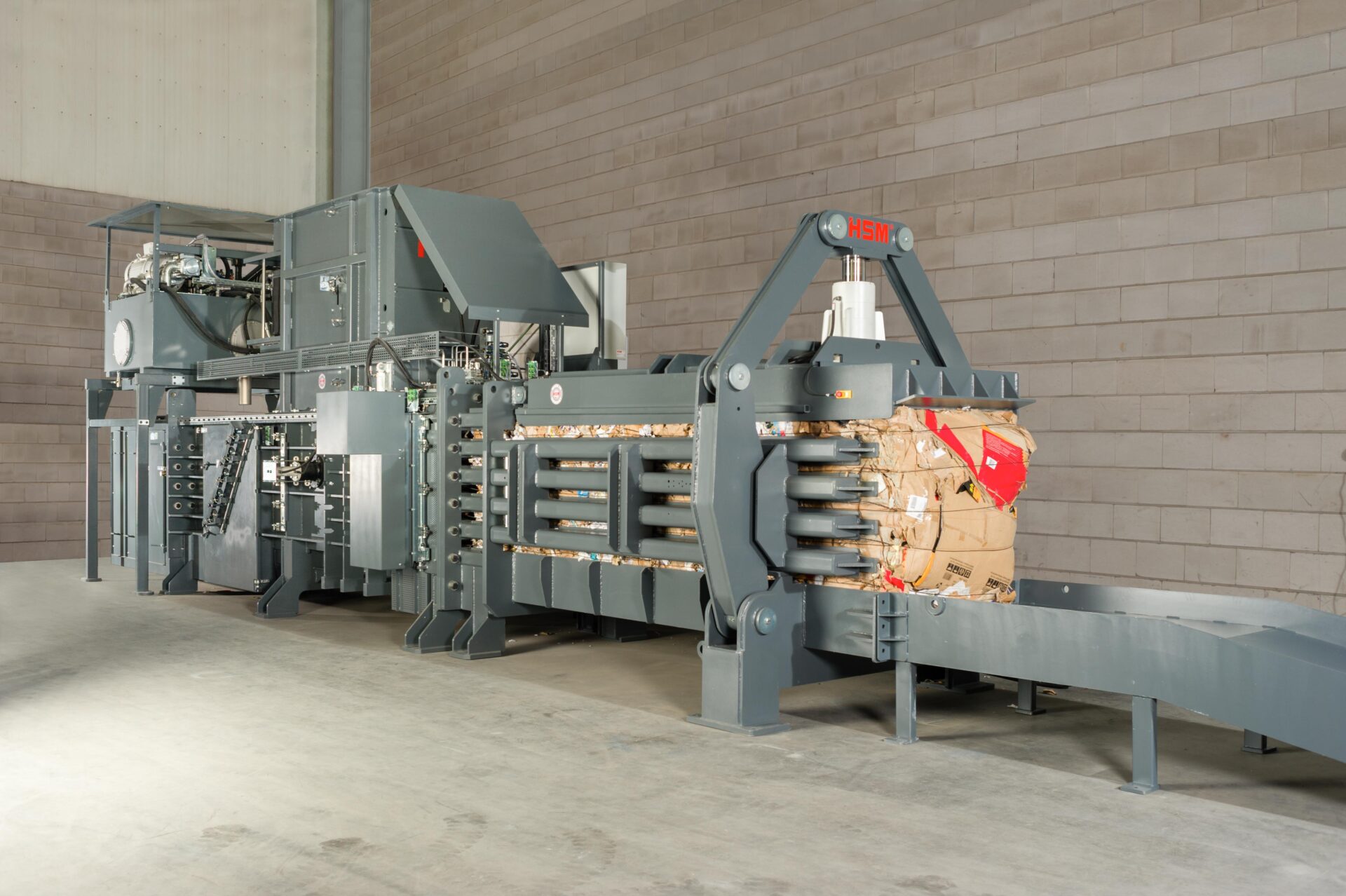 Ebenfalls zu sehen sein soll die vollautomatische Kanalballenpresse HSM VK 15020 R FU, laut HSM ist die leistungsstärkste Ballenpresse im Sortiment. Sie seimit frequenzgeregeltem Antrieb ausgestatte und spare bis zu 40 % Energie im Vergleich zu herkömmlichen Antrieben. Mit der HSM VK 15020 sollen sich bei einem Antrieb von 2 x 75 kW und einer Presskraft von 1500 kN bis zu 44 Tonnen Mischpapier pro Stunde zu Ballen pressen lassen, die jeweils bis zu 1.250 Kilogramm wiegen.