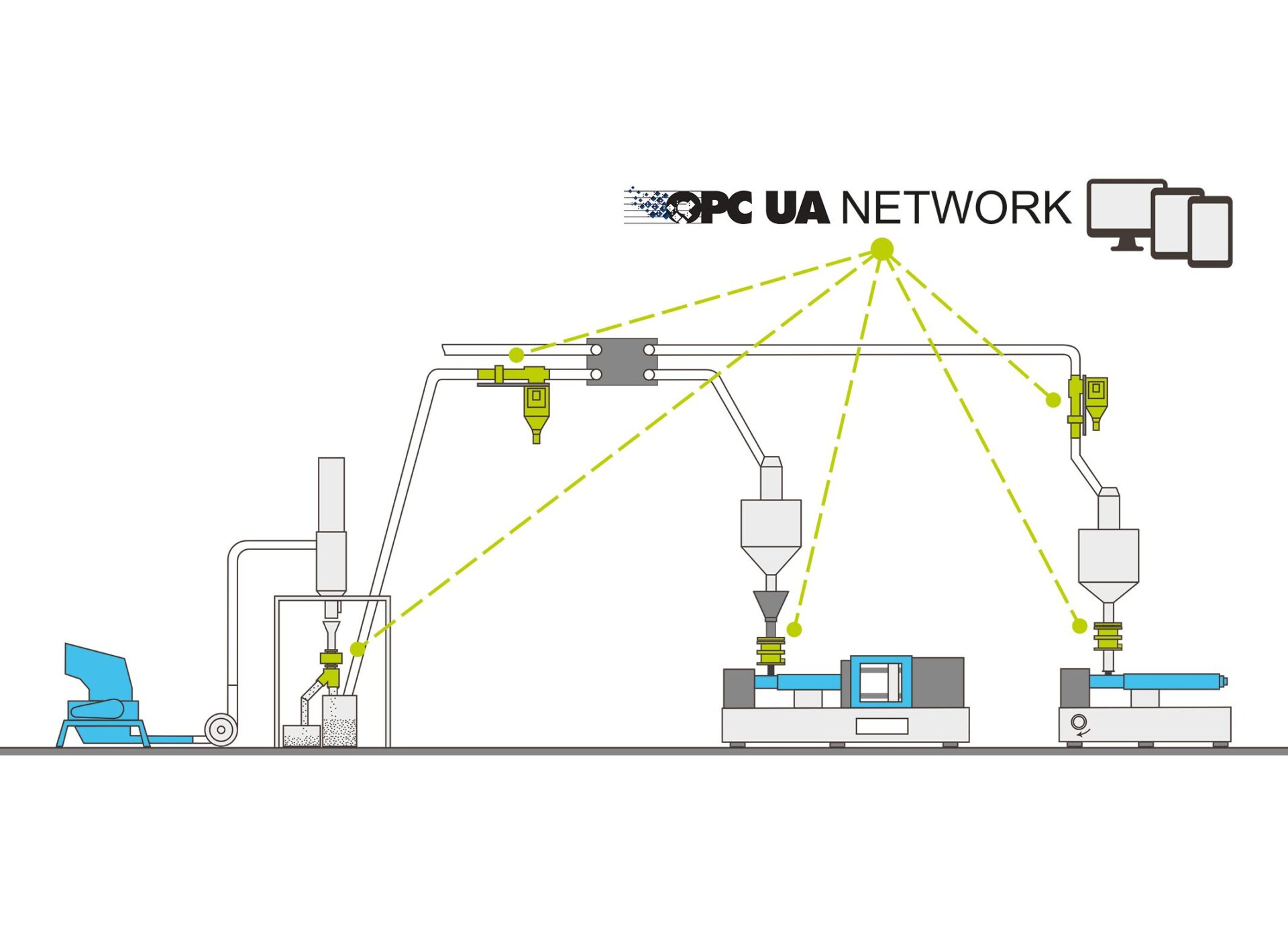 Wenn in den Prozessen der Kunststoffindustrie Verarbeitungsmaschinen, wie z.B. Spritzgießmaschinen, mit Peripheriegeräten, wie z.B. Dosiereinrichtungen und Metallseparatoren, vernetzt sind, ist sichergestellt, dass ausreichend Material nachdosiert wird, wenn es bei einer entdeckten Metallverunreinigung zu einem Ausscheidevorgang kommt. Nutzen von OPC UA für Spritzgießer und Systemintegratoren ist, dass die Produktqualität gewährleistet ist, weil eine Unterspritzung der produzierten Kunststoffteile vermieden wird. Außerdem wird durch OPC UA der Service wie z.B. Wartungsmaßnahmen verbessert und vereinfacht. Eine Auswertung der Geräteparameter kann Cloud-basiert erfolgen und stehen dem Service in Echtzeit zur Verfügung.