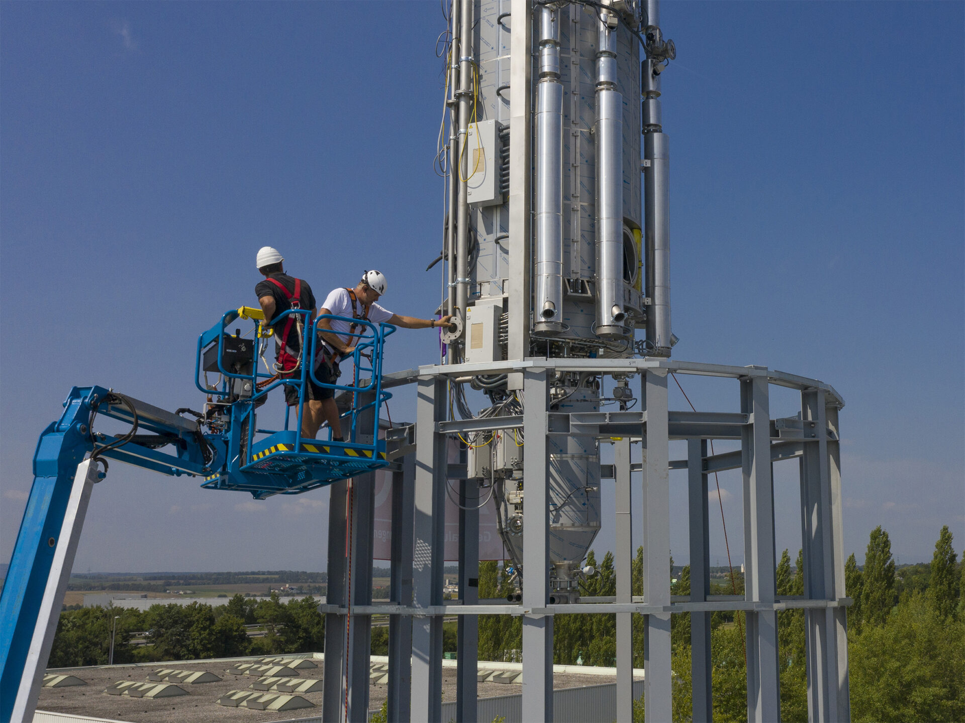 Installation des 14 m hohen viscoSTAR SSP-Reaktors. Bild: Starlinger