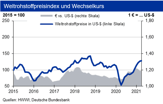Die Weltrohstahlproduktion zog bis Ende März 2021 im Vorjahresvergleich um 10 % an, für das Gesamtjahr fällt der Anstieg deutlich geringer aus. Die höchsten Zuwächse ver- zeichnet China mit 15,6 %. In der EU betrug er gut 3 %, in den USA und Japan war die Erzeugung rückläufig. Die Schrottpreise stabilisierten sich im April 2021 während die Eisenerzpreise weiter anzogen. Dies verteuerte bei knappem Angebot Warmbreitband und verzinkte Bleche im Schnitt um 16 %, die Preise für Walzdraht gingen seitwärts. Die IKB erwartet Ende des zweiten Quartals 2021 eine Entspannung bei den Schrottpreisen, bei den Stahlpreisen dürfte der Peak der Spotpreise zur Jahresmitte erreicht sein.
