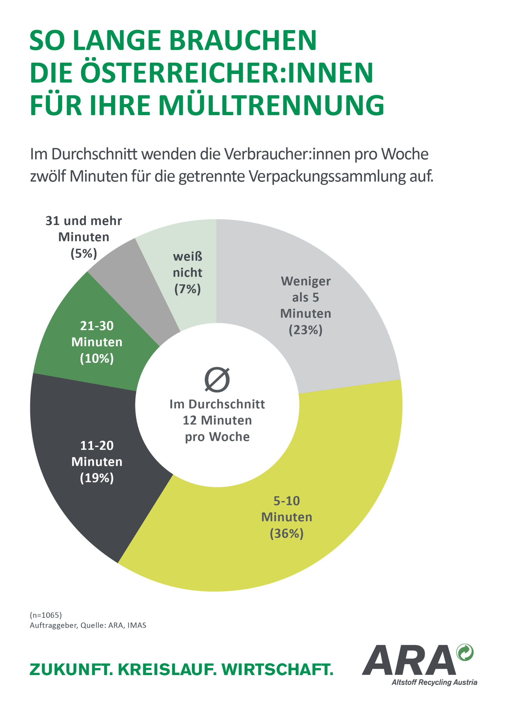 Das Fazit: 96 Prozent der Menschen in Österreich empfinden Mülltrennung als wichtig, auch die getrennte Sammlung von Verpackungen wird von 93 Prozent als wesentlich eingeschätzt. 34 Prozent der befragten Personen möchte ihren Abfall künftig noch genauer trennen, besonders motiviert sind die 14- bis 29-Jährigen mit 42 Prozent. Im Durchschnitt wenden die Österreicher*innen zwölf Minuten pro Woche für die getrennte Sammlung auf. Mit Blick auf den Klimaschutz und die neuen Recyclingziele für 2025 begrüßt die ARA diese starken Ergebnisse und verweist darauf, künftig noch näher an den Endkonsument*innen sein zu wollen.