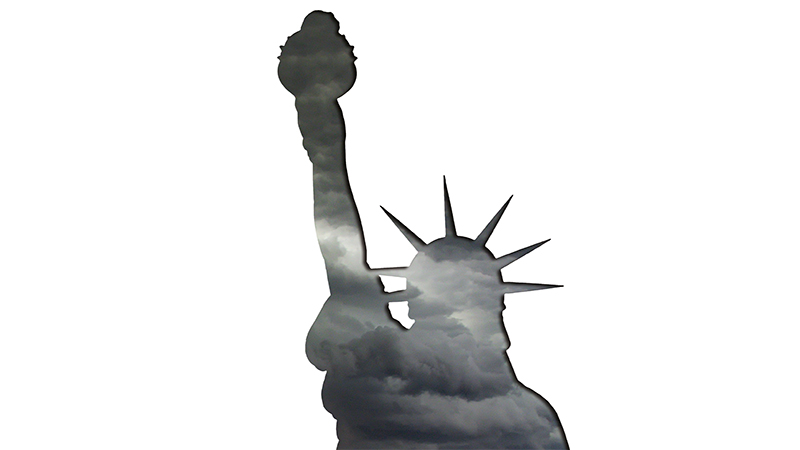 Nach Foto Freiheitsstatue: Lothar Wandtner; Foto Gewitterhimmel: Jürgen Nießen; beide pixelio.de
