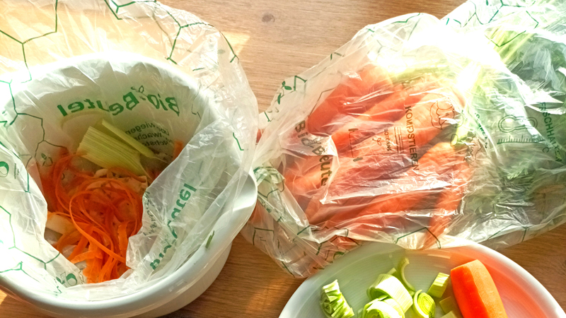 Der Bio-Beutel ist im Haushalt mehrfach nutzbar. Lebensmittel wie zum Beispiel Karotten lassen sich darin aufbewahren und frisch halten. Für Küchenabfälle wie etwa Kartoffelschalen bietet sich der Bio-Beutel als praktische und hygienische Sammelhilfe an, die über die Biotonne entsorgt werden kann.