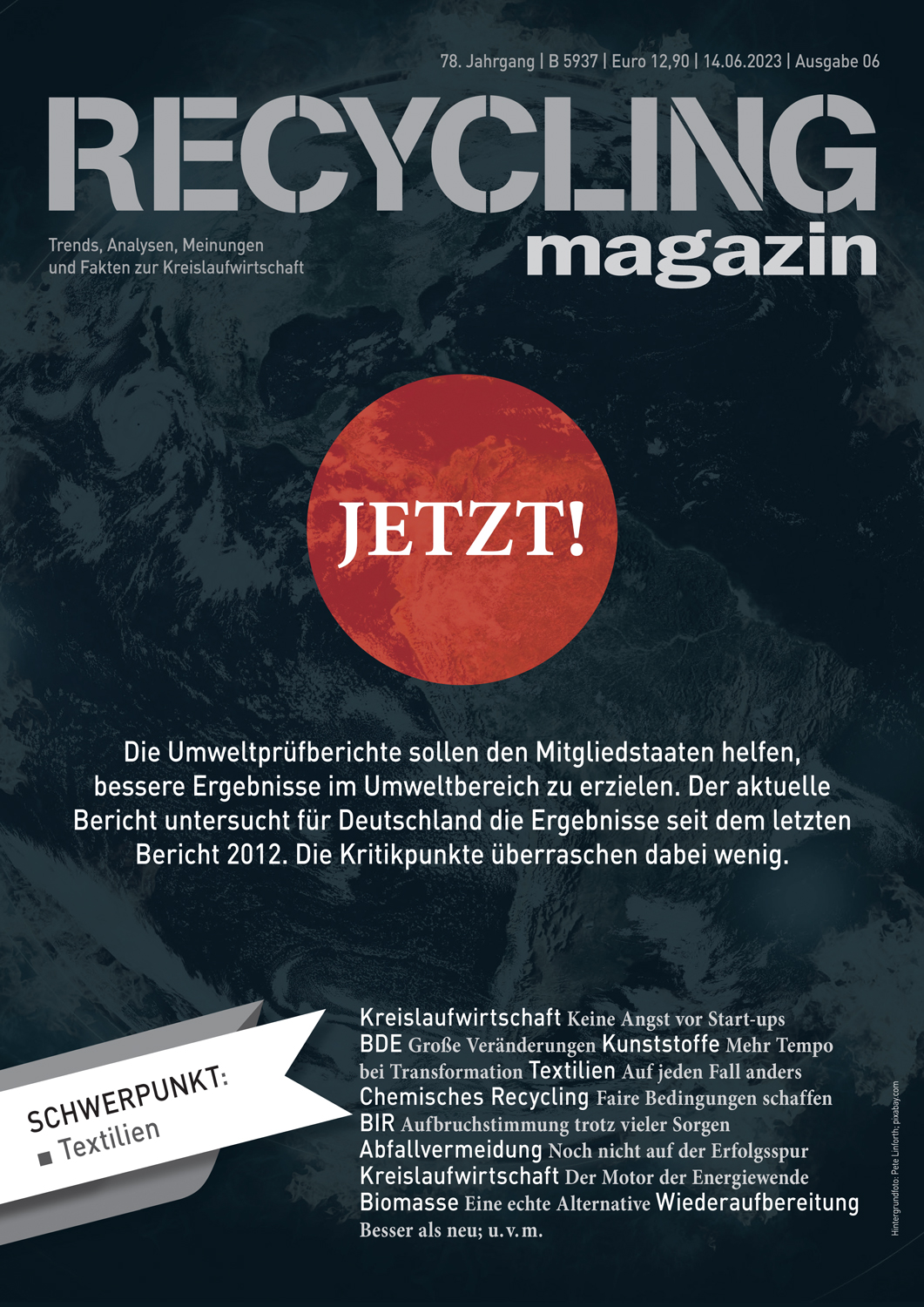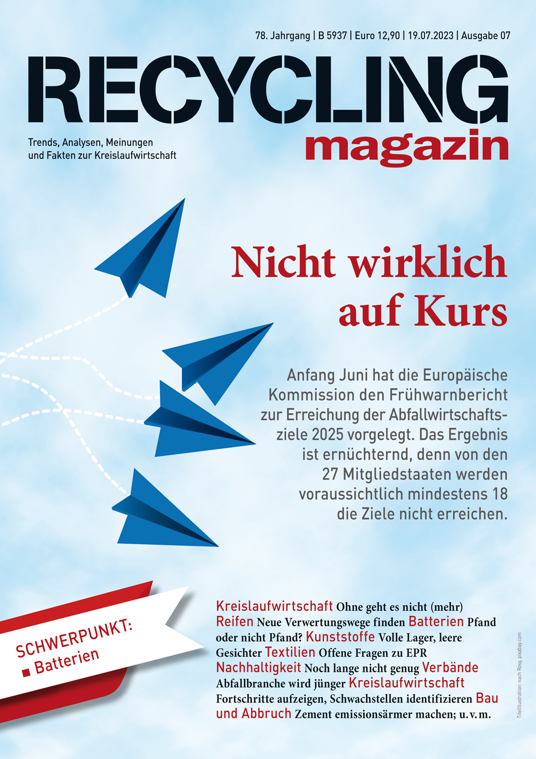 Das RECYCLING magazin berichtet seit über 75 Jahren unabhängig und aktuell über die wirtschaftlichen, politischen und technischen Entwicklungen in der Recycling- und Entsorgungswirtschaft. Ihr Maßstab ist ein qualitativ hochwertiger Journalismus mit allen Facetten einer modernen Berichterstattung. mehr
