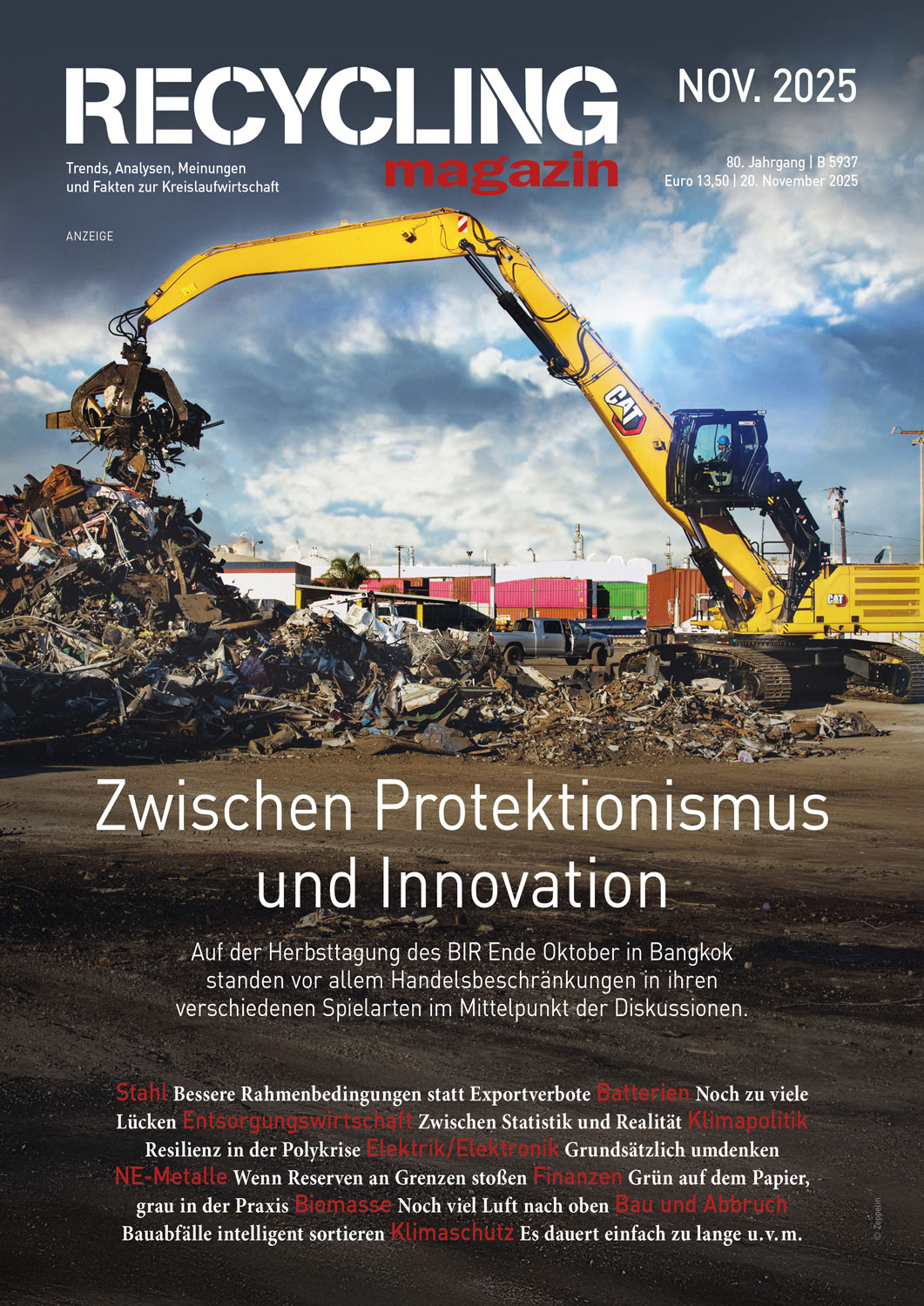 Das RECYCLING magazin berichtet seit 80 Jahren unabhängig und aktuell über die wirtschaftlichen, politischen und technischen Entwicklungen in der Recycling- und Entsorgungswirtschaft. Ihr Maßstab ist ein qualitativ hochwertiger Journalismus mit allen Facetten einer modernen Berichterstattung. mehr
