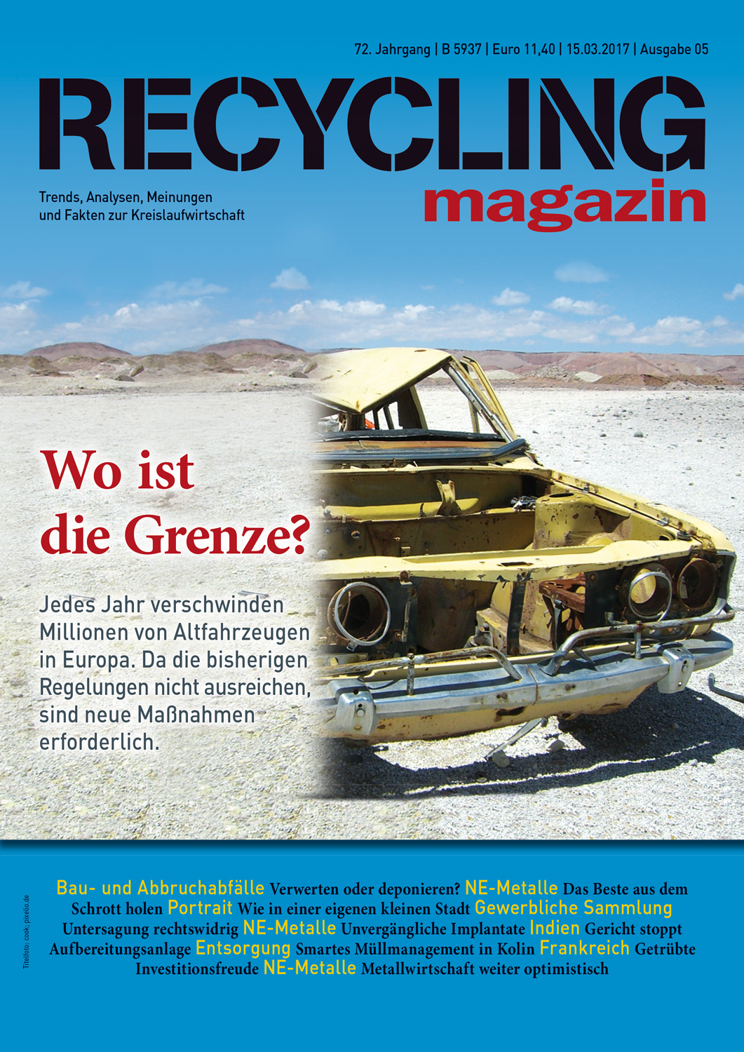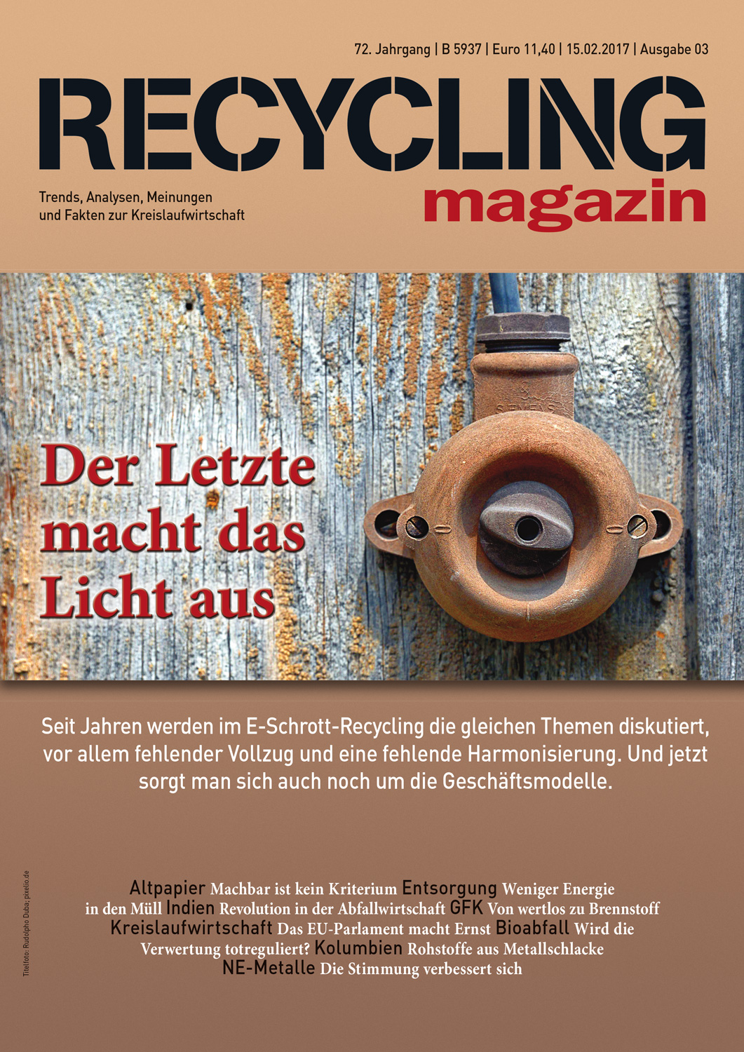 Das RECYCLING magazin berichtet seit über 75 Jahren unabhängig und aktuell über die wirtschaftlichen, politischen und technischen Entwicklungen in der Recycling- und Entsorgungswirtschaft. Ihr Maßstab ist ein qualitativ hochwertiger Journalismus mit allen Facetten einer modernen Berichterstattung. mehr