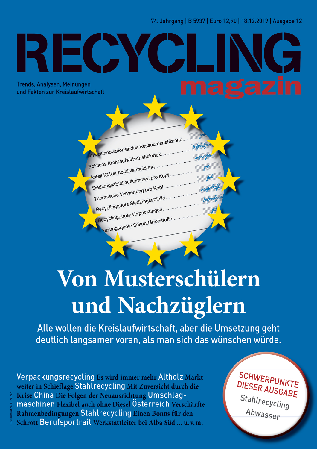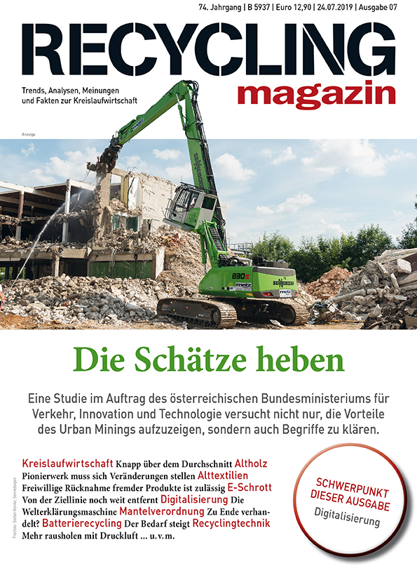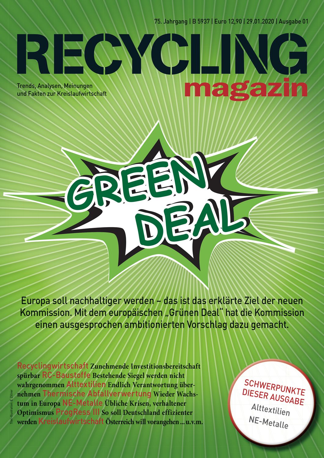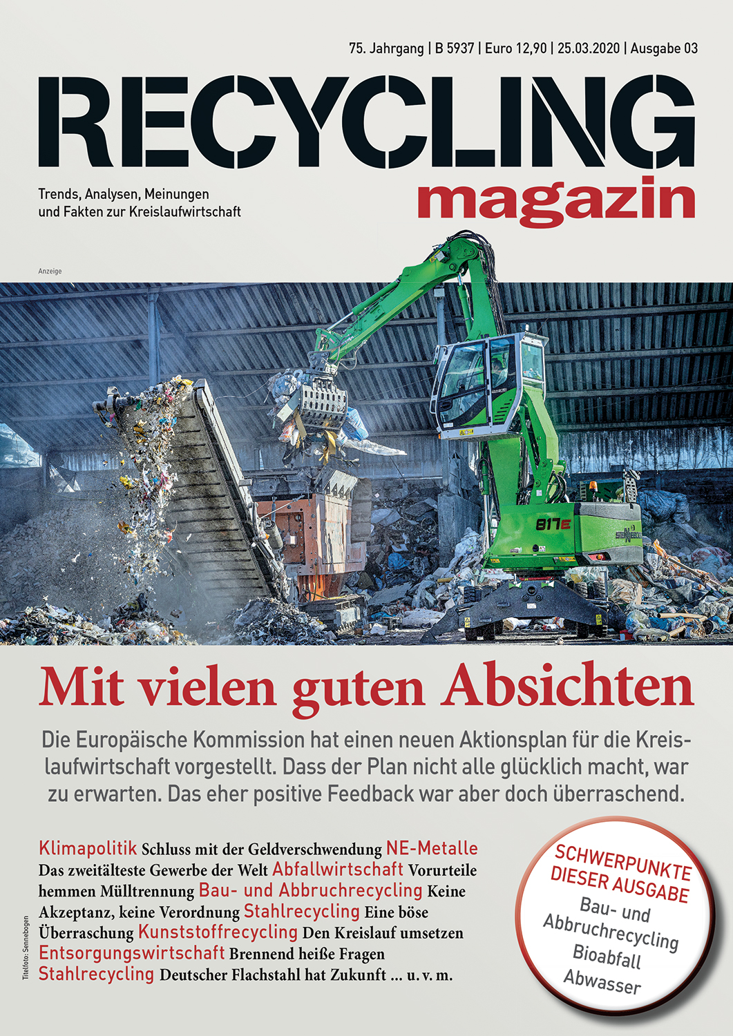 Das RECYCLING magazin berichtet seit 80 Jahren unabhängig und aktuell über die wirtschaftlichen, politischen und technischen Entwicklungen in der Recycling- und Entsorgungswirtschaft. Ihr Maßstab ist ein qualitativ hochwertiger Journalismus mit allen Facetten einer modernen Berichterstattung. mehr