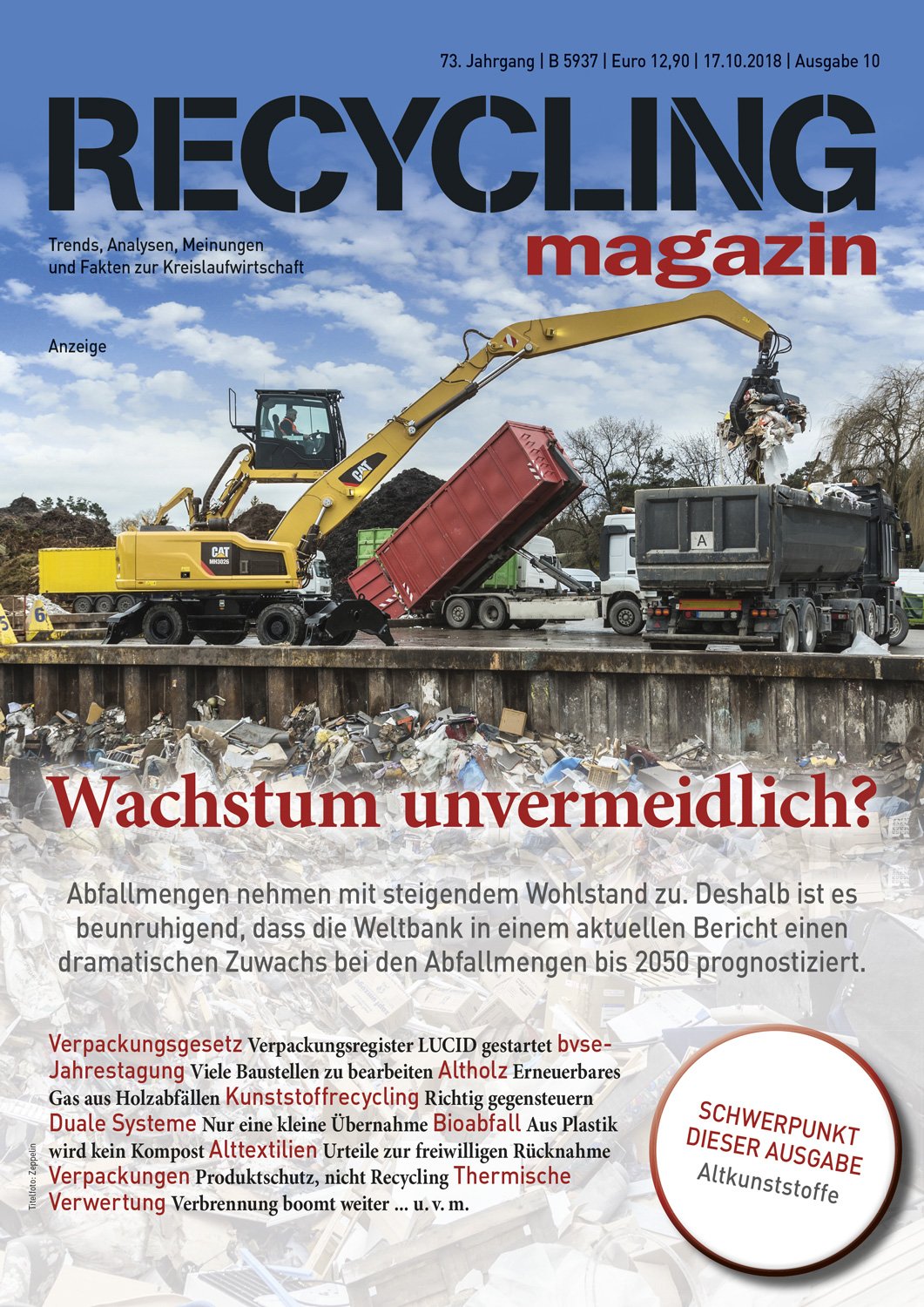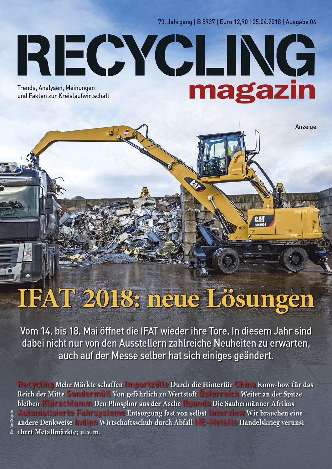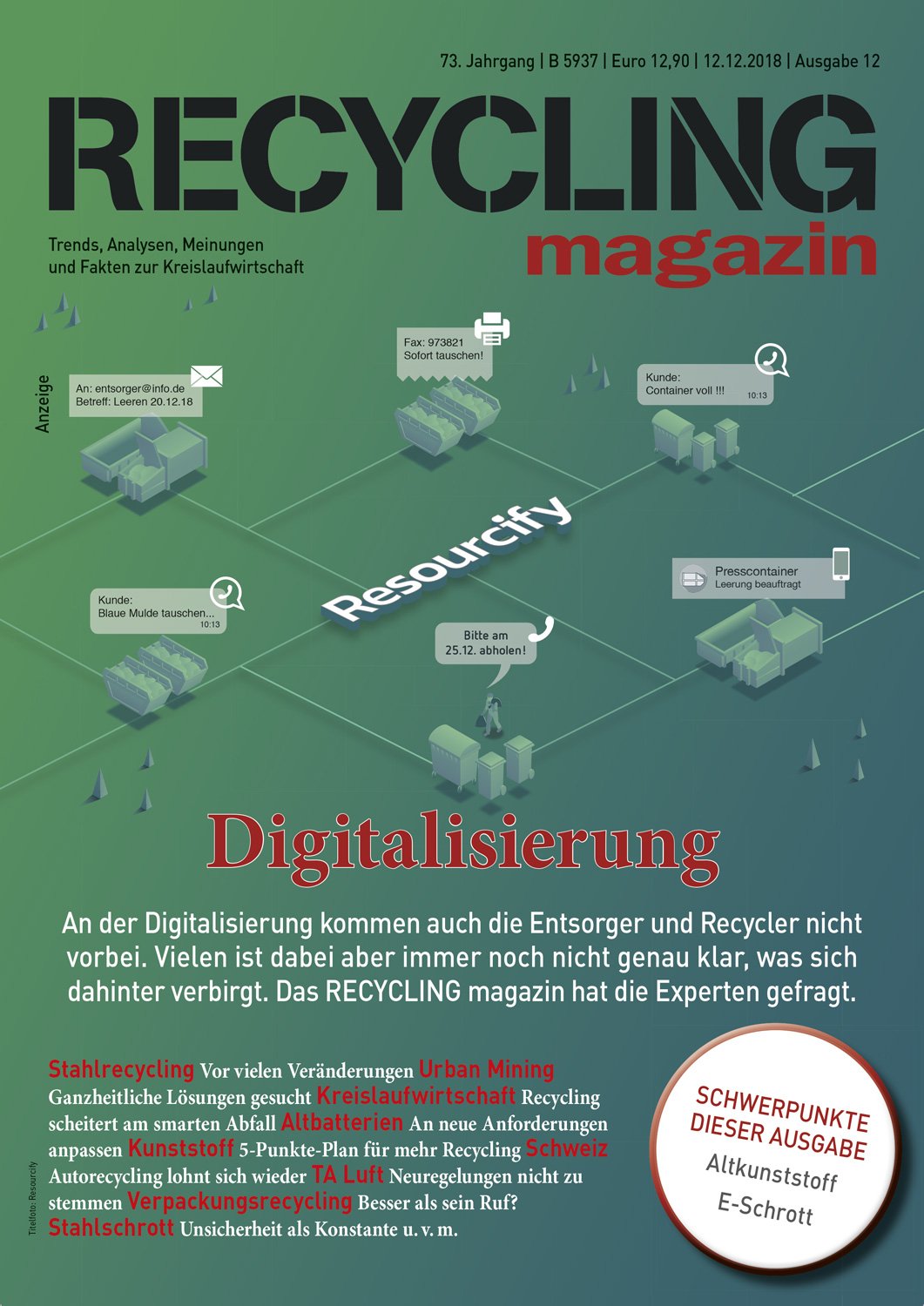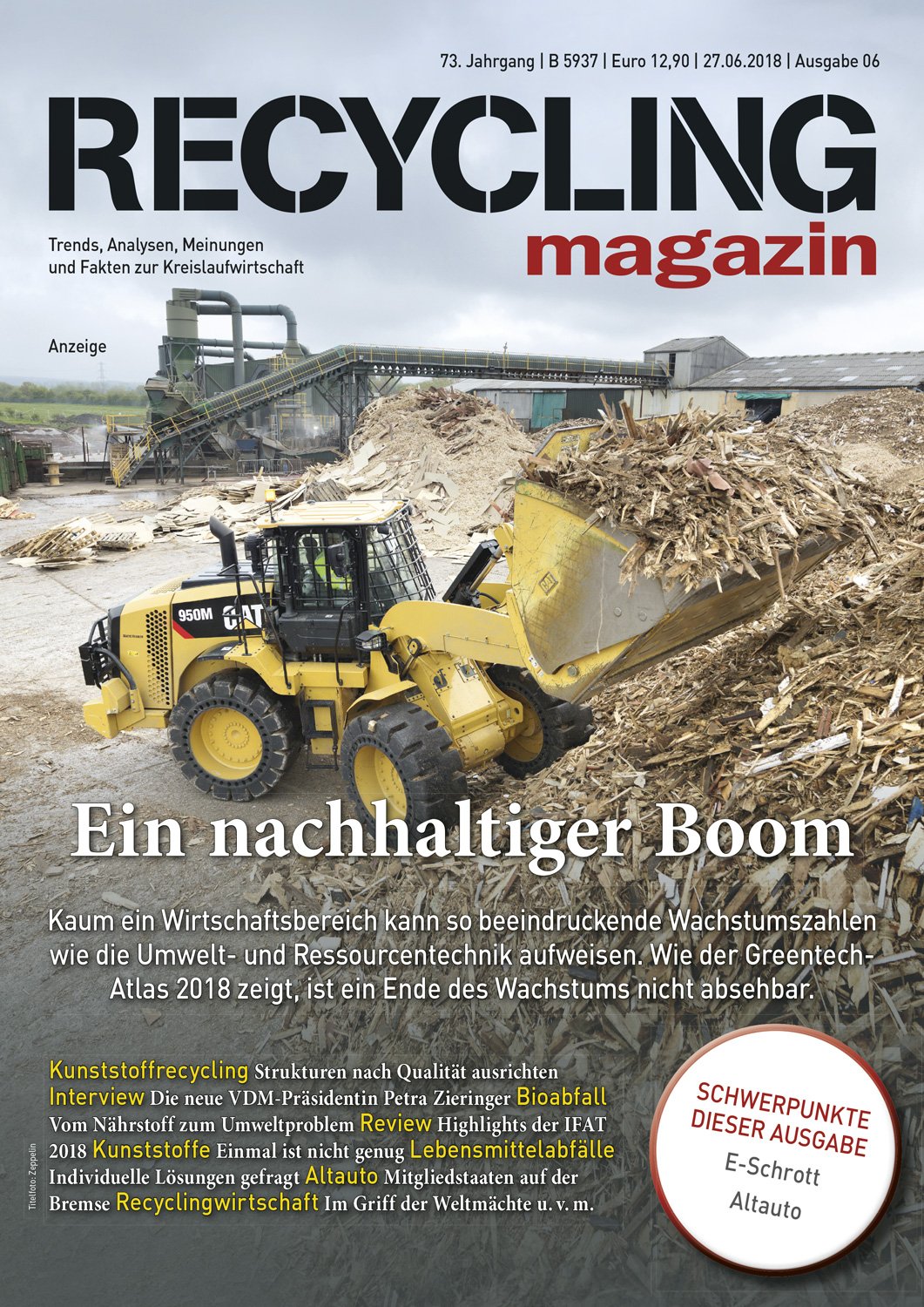 Das RECYCLING magazin berichtet seit 80 Jahren unabhängig und aktuell über die wirtschaftlichen, politischen und technischen Entwicklungen in der Recycling- und Entsorgungswirtschaft. Ihr Maßstab ist ein qualitativ hochwertiger Journalismus mit allen Facetten einer modernen Berichterstattung. mehr
