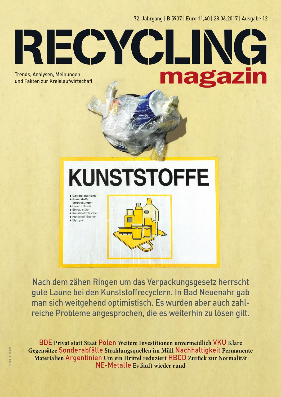 Das RECYCLING magazin berichtet seit 80 Jahren unabhängig und aktuell über die wirtschaftlichen, politischen und technischen Entwicklungen in der Recycling- und Entsorgungswirtschaft. Ihr Maßstab ist ein qualitativ hochwertiger Journalismus mit allen Facetten einer modernen Berichterstattung. mehr