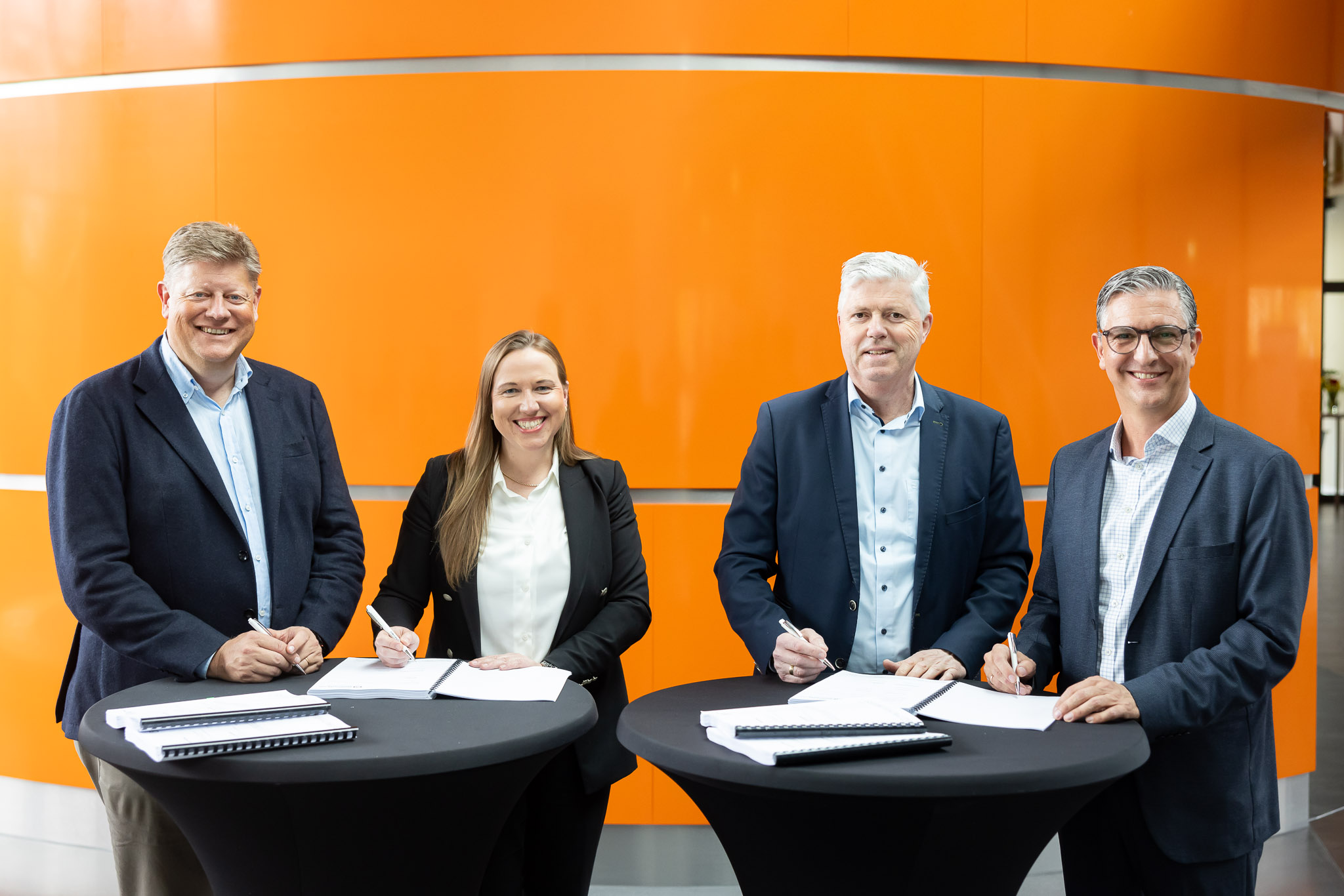 v.l.n.r.: Hans Boels (CEO Lybover), Sandrina Sieverdingbeck (GF DEUMU), Uwe Rehren (GF DEUMU), Ioannis Giouvanitskas (Senior Executive Advisor Lindemann Germany). Copyright: Lindemann