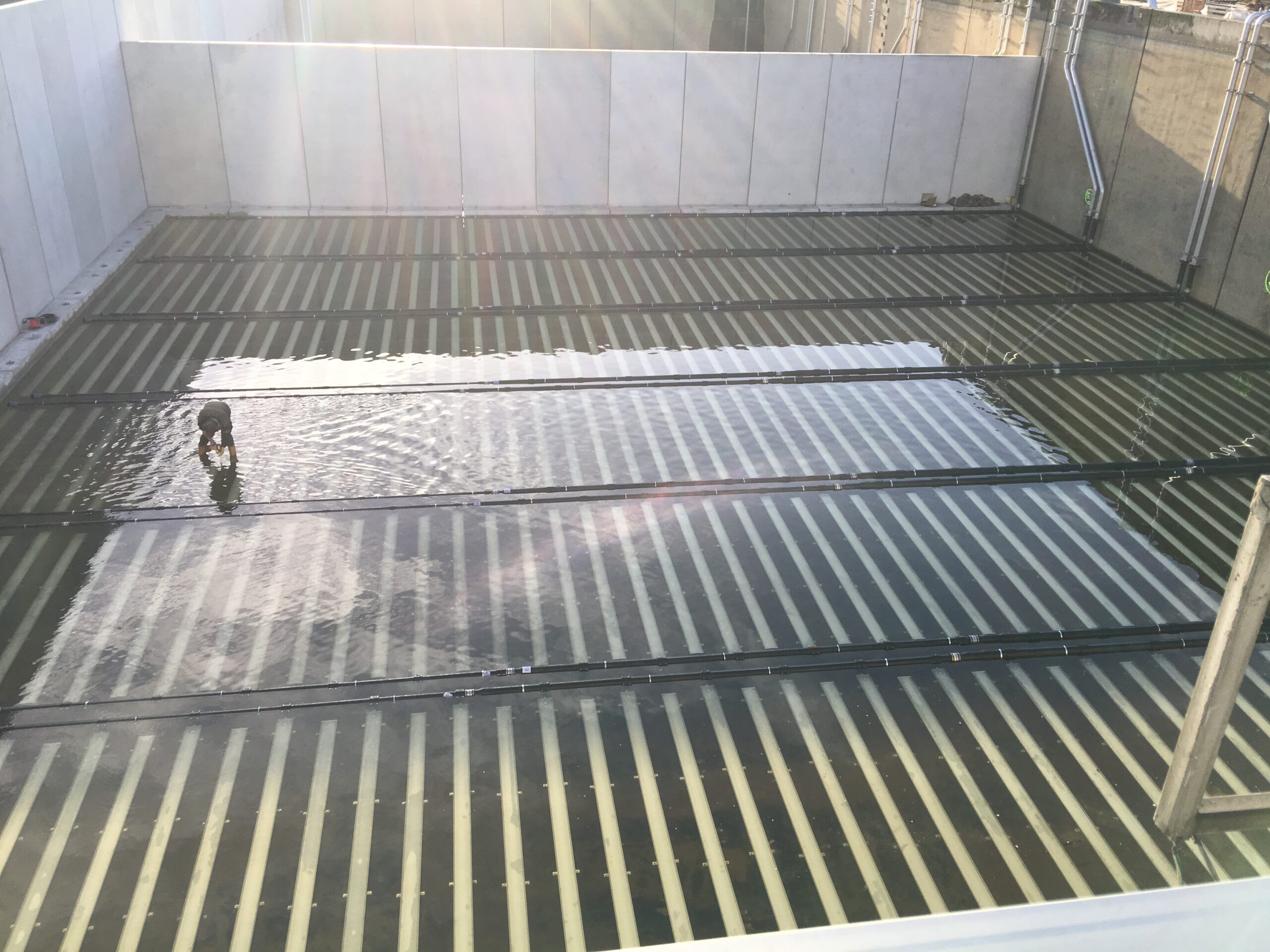 Die Streifenbelüfter in der Kläranlage wurden versetzt angeordnet, um den Regelbereich zu erweitern. (Quelle: Aquaconsult)