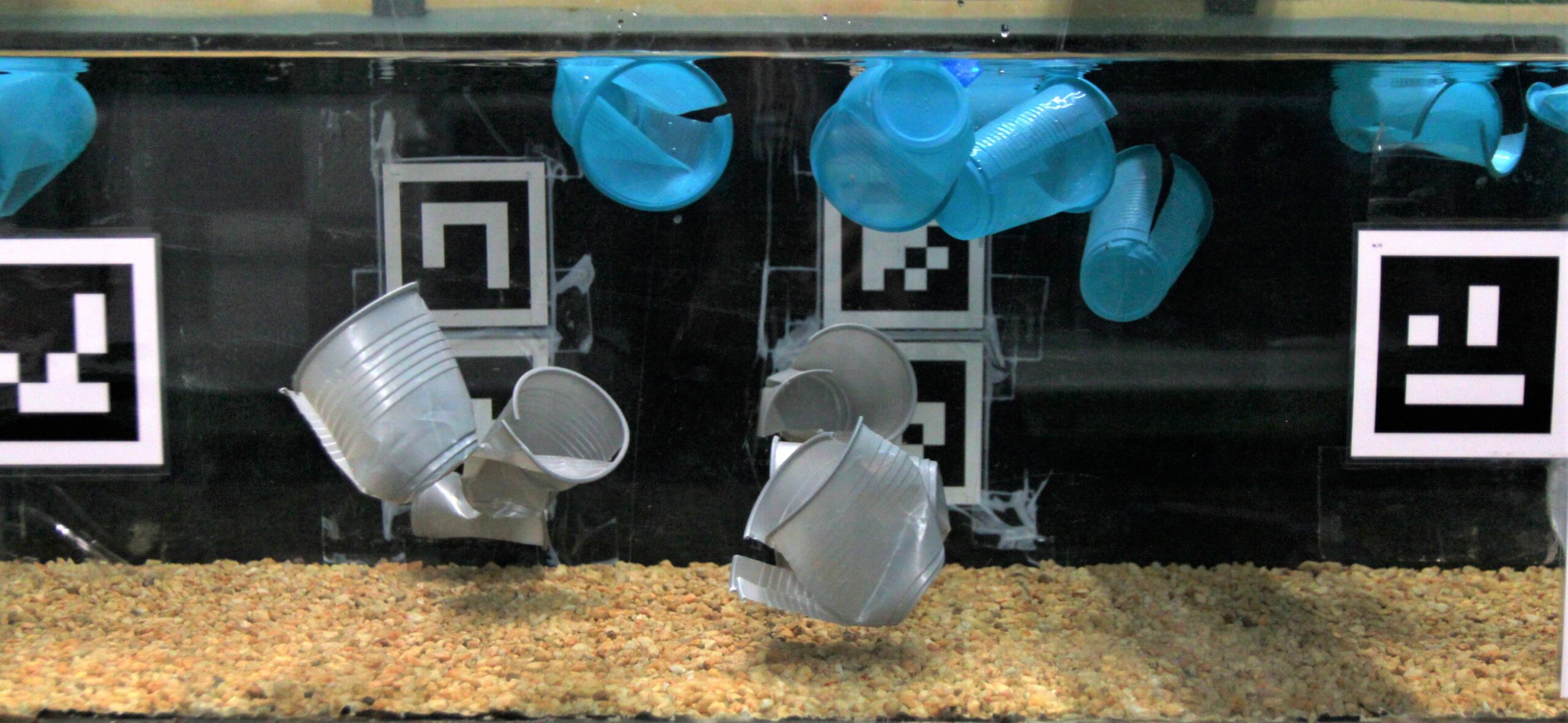 Für ihre Untersuchung nutzten die Forschenden Flussmodelle, die mit Plastikmüll bestückt wurden. Bild: Daniel Valero, KIT