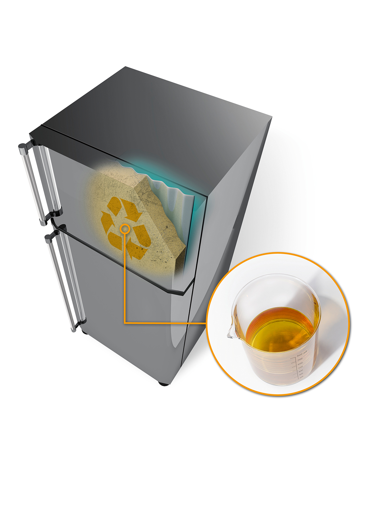KraussMaffei, Rampf, Remondis und BASF entwickeln ein neues Verfahren des chemischen Recyclings und schließen den Materialkreislauf bei PUR-Hartschäumen aus Altkühlschränken.