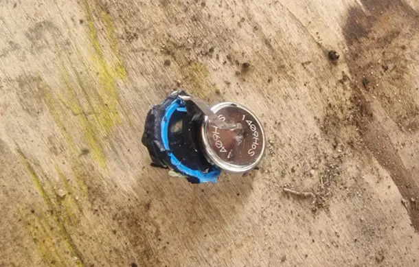 Beschädigte RDKS-Batterie nach mechanischer Belastung: Solche Batterien können Brände auslösen und Recycling- sowie Verwertungsanlagen gefährden. Copyright: Reifen Draws GmbH