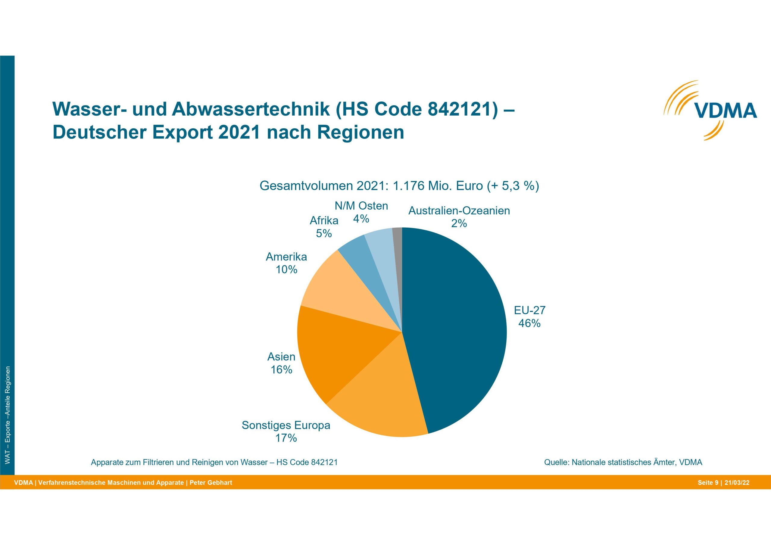 Wichtigste Exportmärkte für Wasser- und Abwassertechnik aus Deutschland 2021 im Vergleich zu 2020