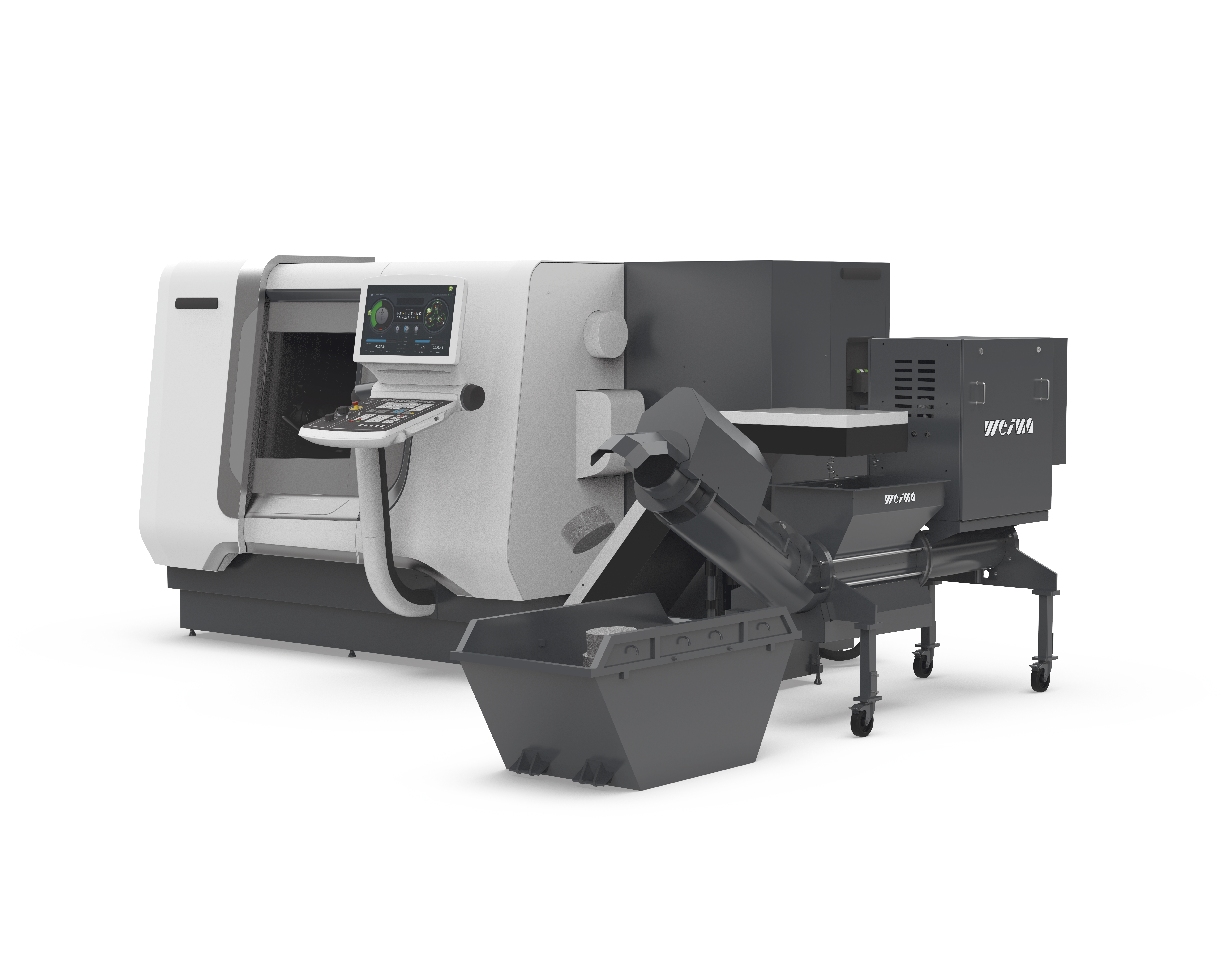 PUEHLER C.200 platziert direkt unter Späneförderer eines CNC-Bearbeitungszentrums Bild: Weima