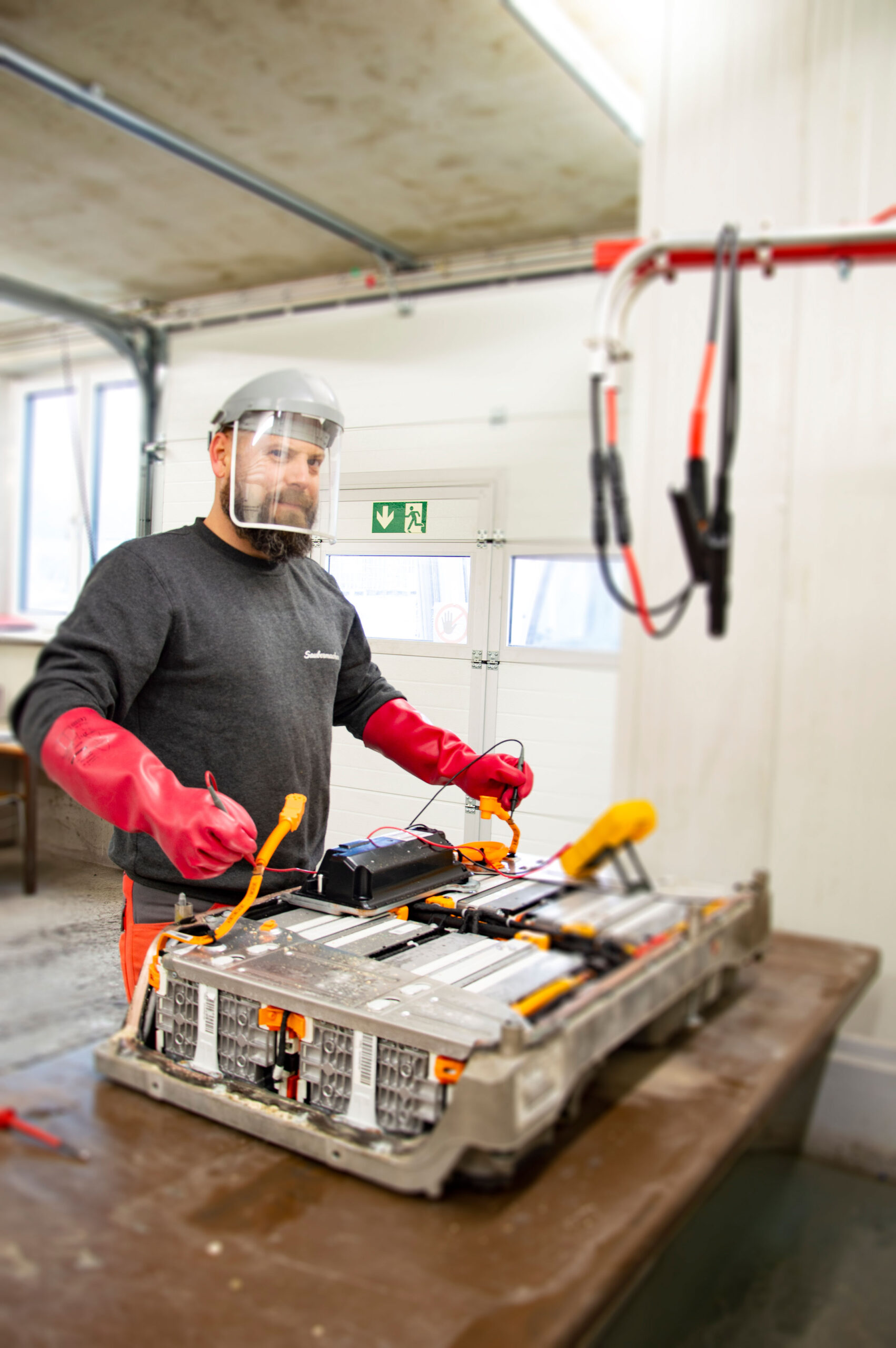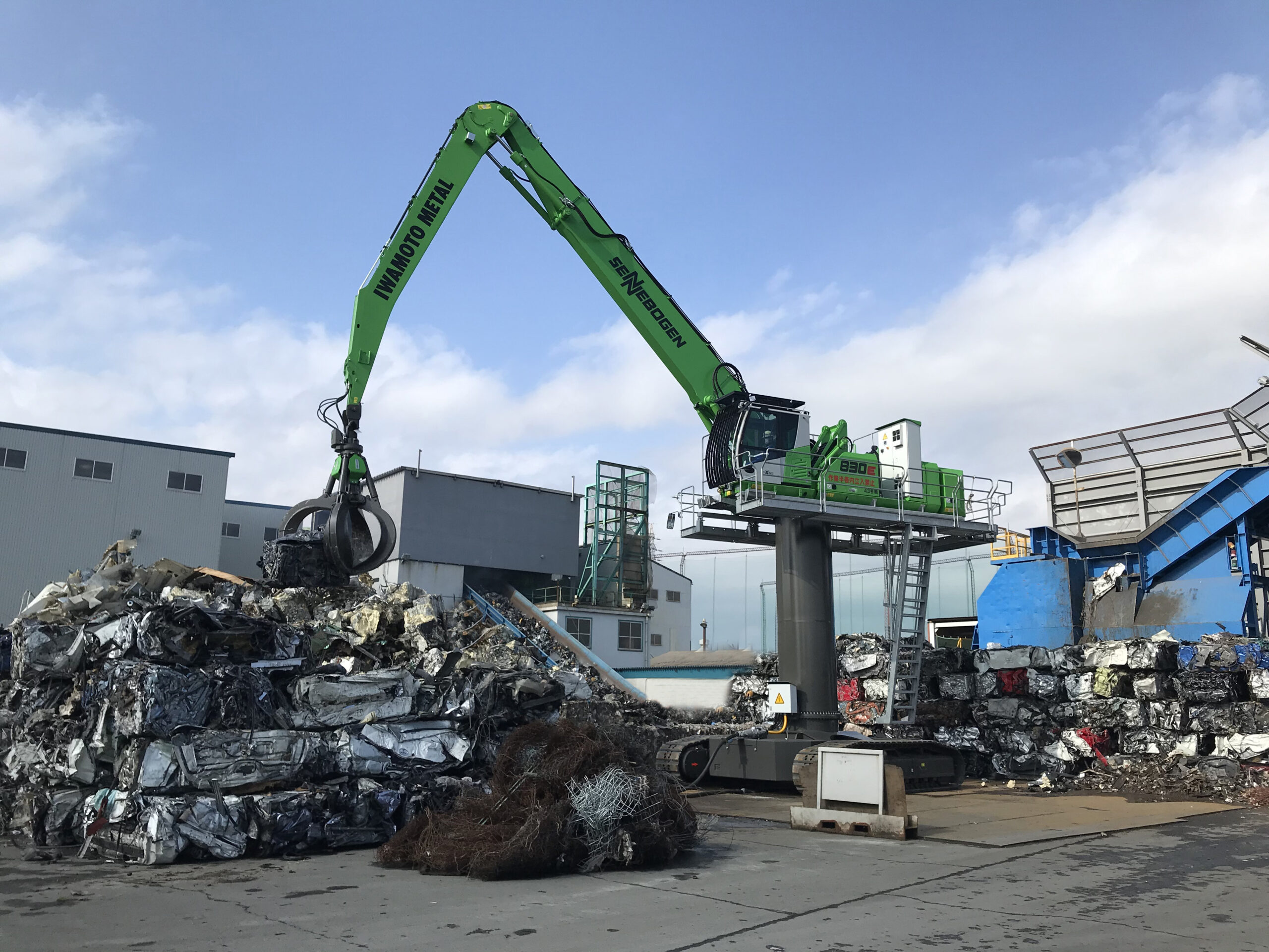 Umschlagbagger statt Erdbaubagger im Metallrecycling: mit Raupenunterwagen, 4,5 m Pylonerhöhung und 132 kW Elektromotor ist die Maschine genau für die Umschlagbedingungen von Iwamoto Metal Co Ltd’s größtem Werk konfiguriert. Bild: Sun Earth