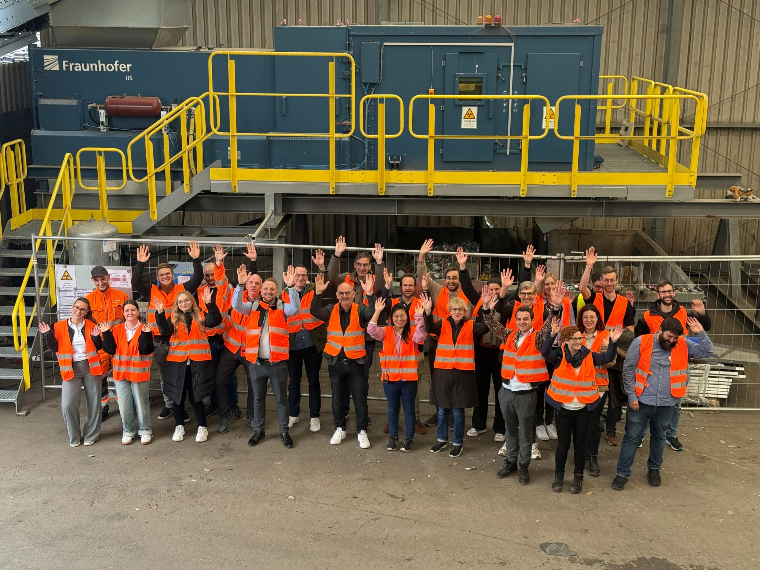 Inbetriebnahme DangerSort: Vertreterinnen und Vertreter des K3I-Cycling Projektes feiern gemeinsam den erfolgreichen Start des KI-basierten Röntgensortiersystems DangerSort. Copyright: Lobbe