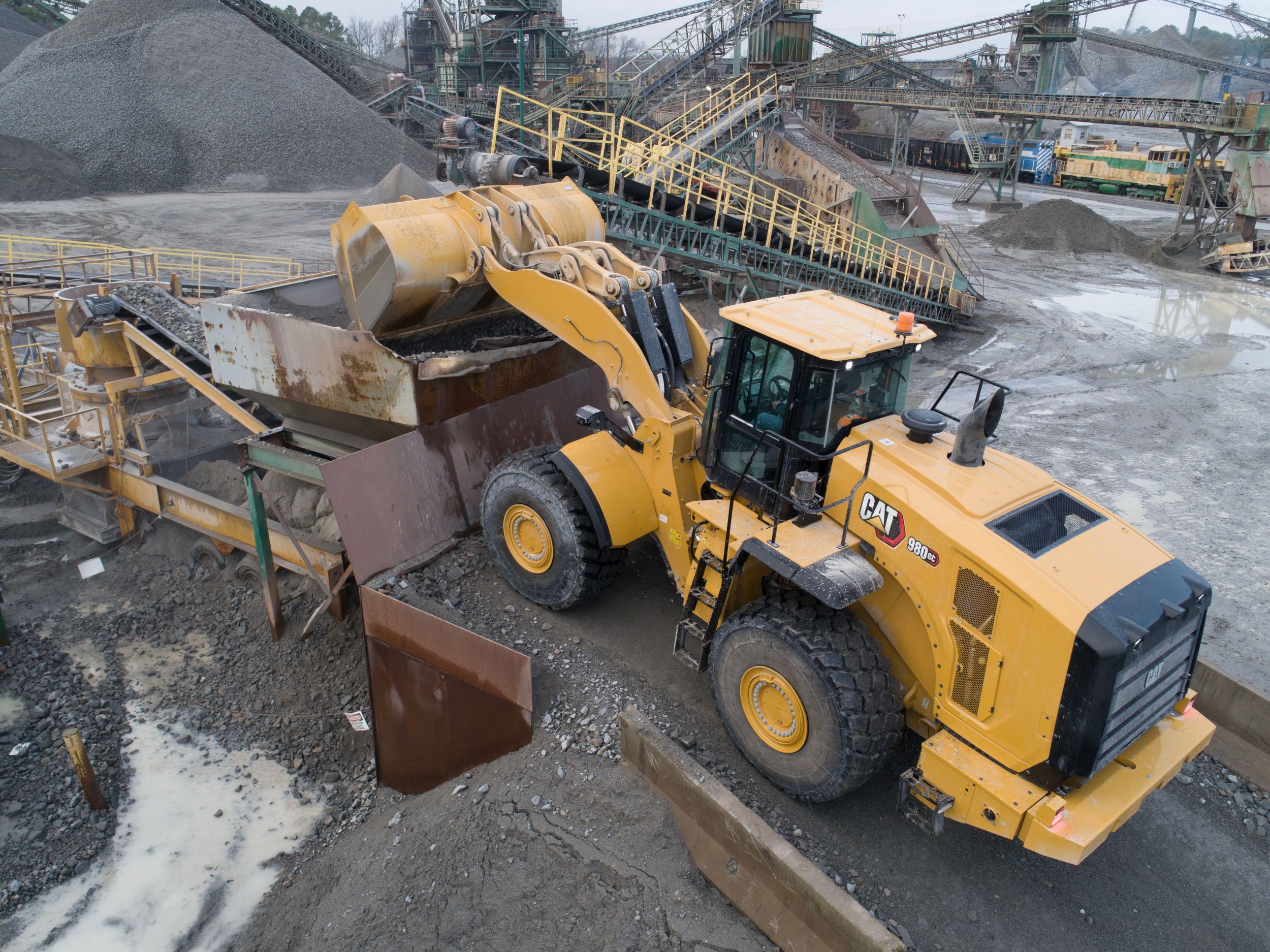 Der neue Cat Radlader 980 GC basiert auf einer Tradition von Radladern mit bewährten Komponenten und integrierten Cat Maschinensystemen. Copyright: Caterpillar