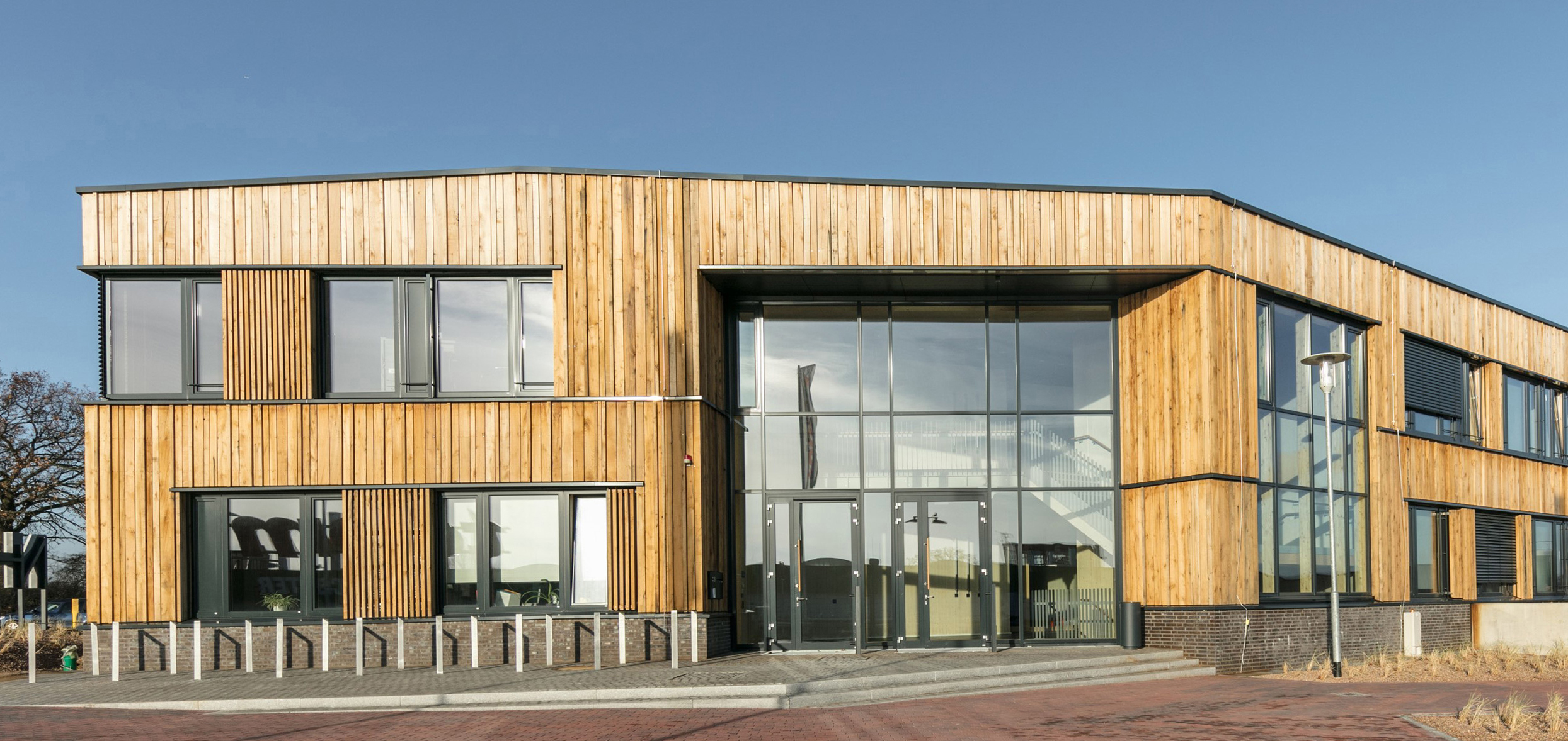 Der neue Gebäudekomplex der Stadtwerke Neustadt in Holstein wurde so konzipiert, dass er am Ende der Nutzung komplett recycelt werden kann. (Quelle: Oliver Kuty)