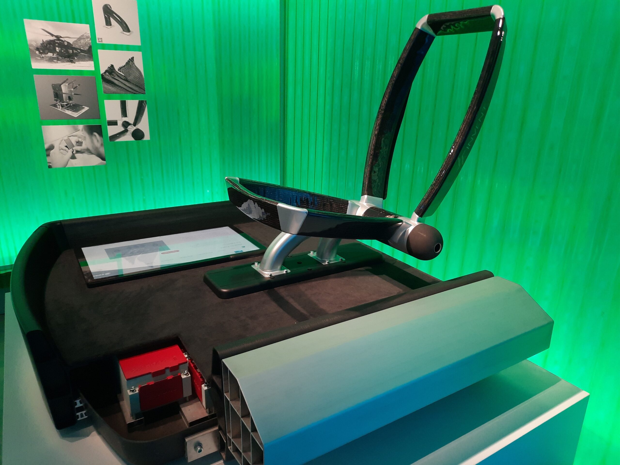 30 Jahre lang weiterverwendbar: Fahrzeugplattform aus Faserverbundkunststoffen für E-Autos auf der Mailand Design Week (Quelle: Justus von Freeden/Fraunhofer IWU)