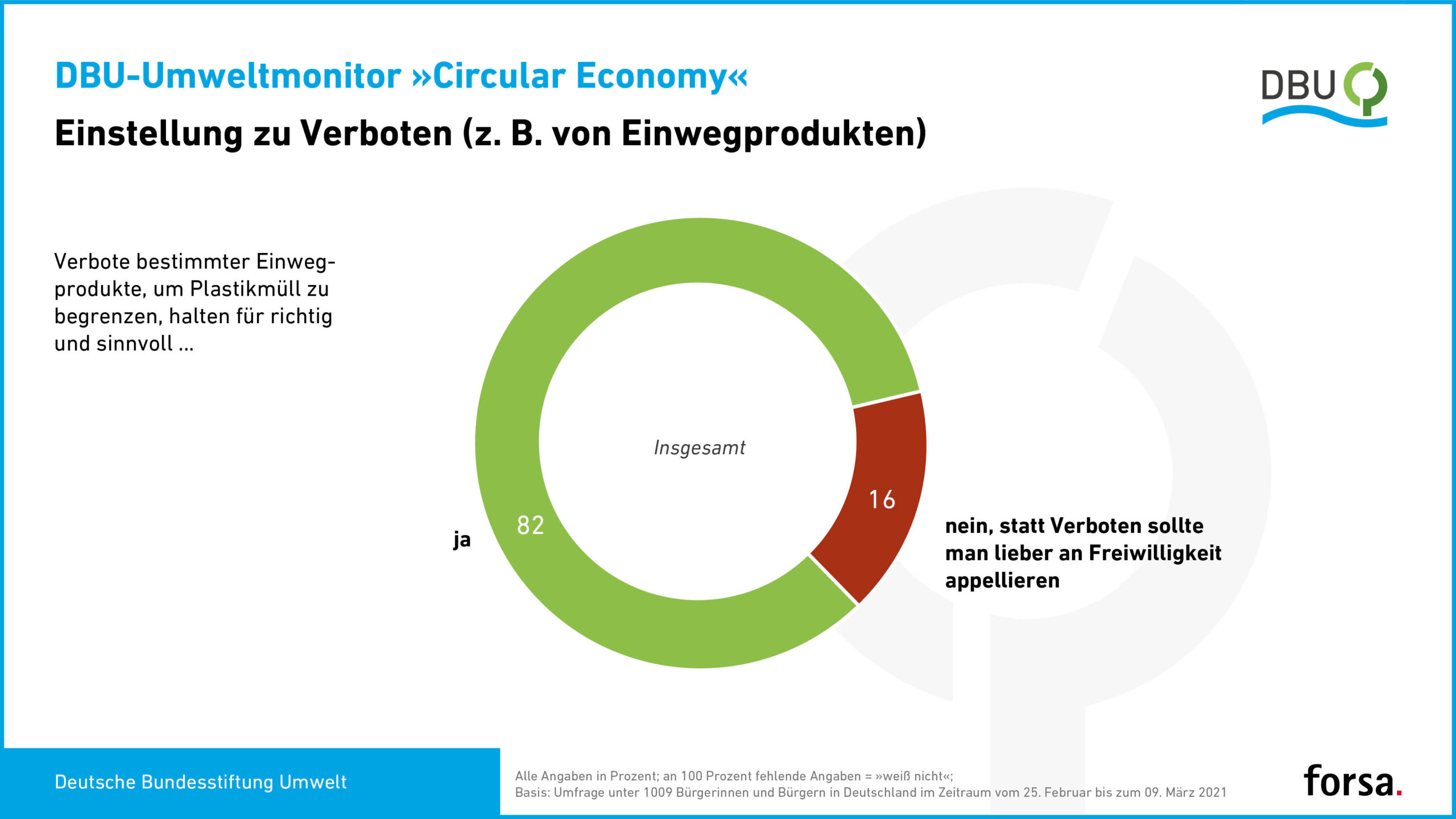 Laut einer repräsentativen Umfrage im Auftrag der DBU ist eine Mehrheit der Deutschen für ein Verbot von Einwegprodukten. (Quelle: DBU)