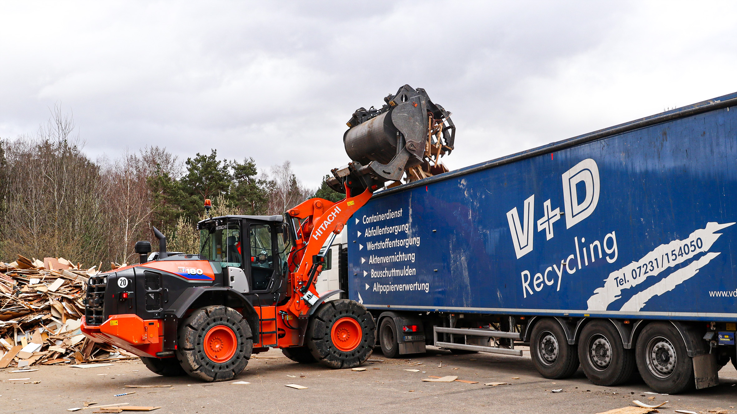 Mit erhöhtem Schaufeldrehpunkt klappt das Beladen des LKW wie am Schnürchen. Bild: Kiesel