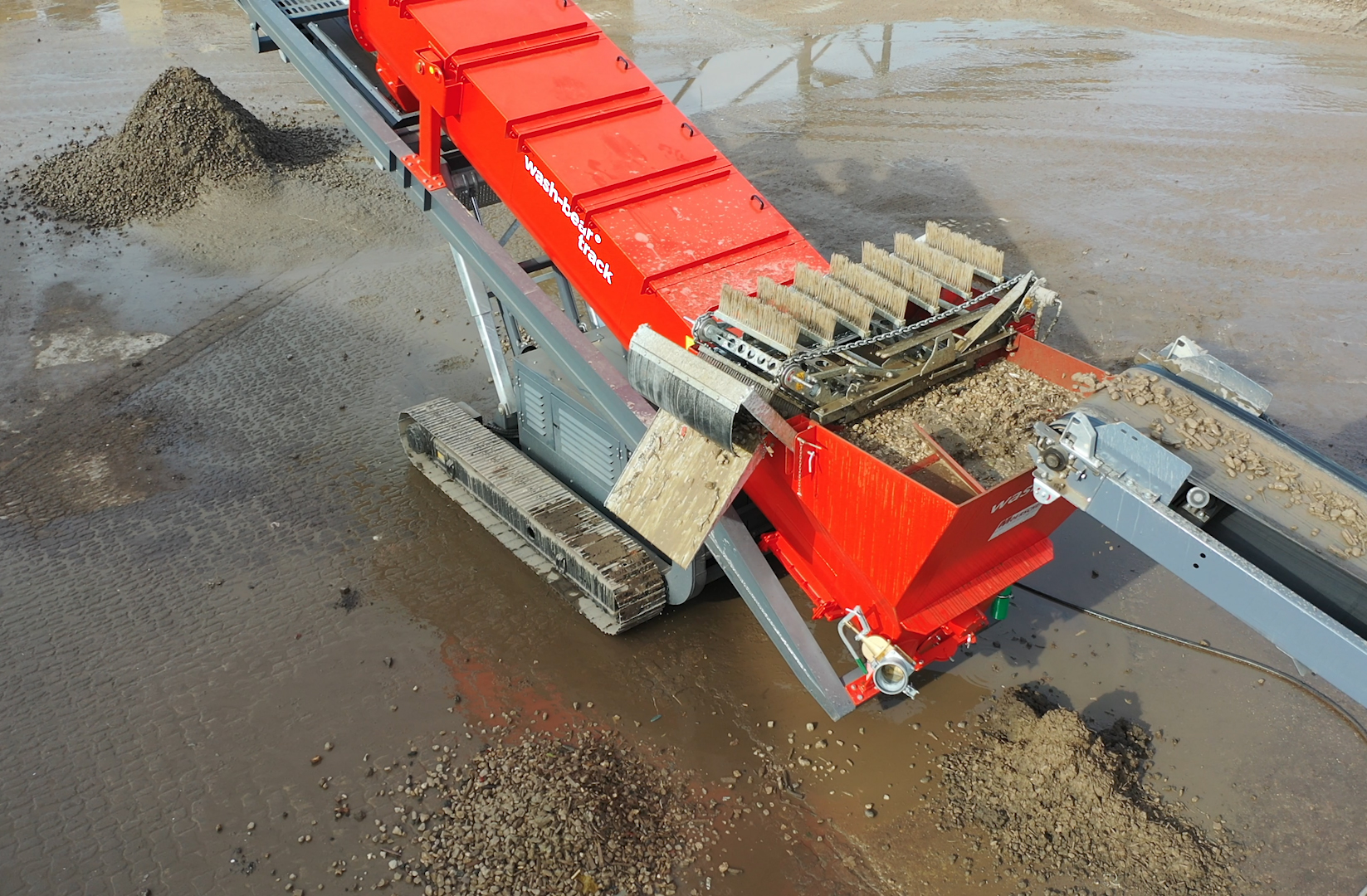 Der neue Wash-bear Track lässt sich als raupenmobile Einheit mit eigenem Austragsband perfekt in eine Prozesskette einfügen.