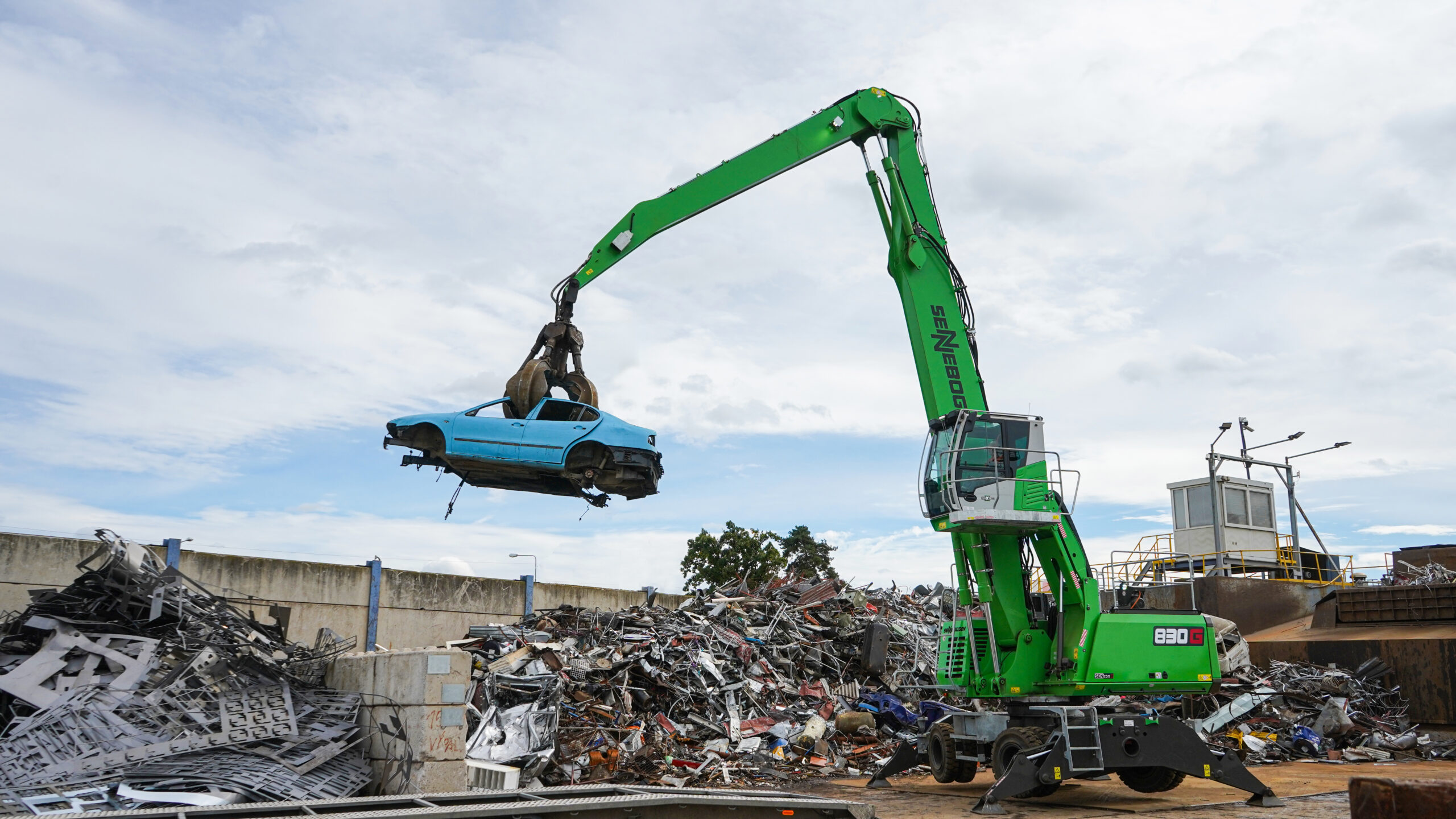 Dank des K21-Auslegers erreicht der Sennebogen 850 G bis zu 21 m und ermöglicht höhere Schrotthalden. Foto: Cesaro Mac Import