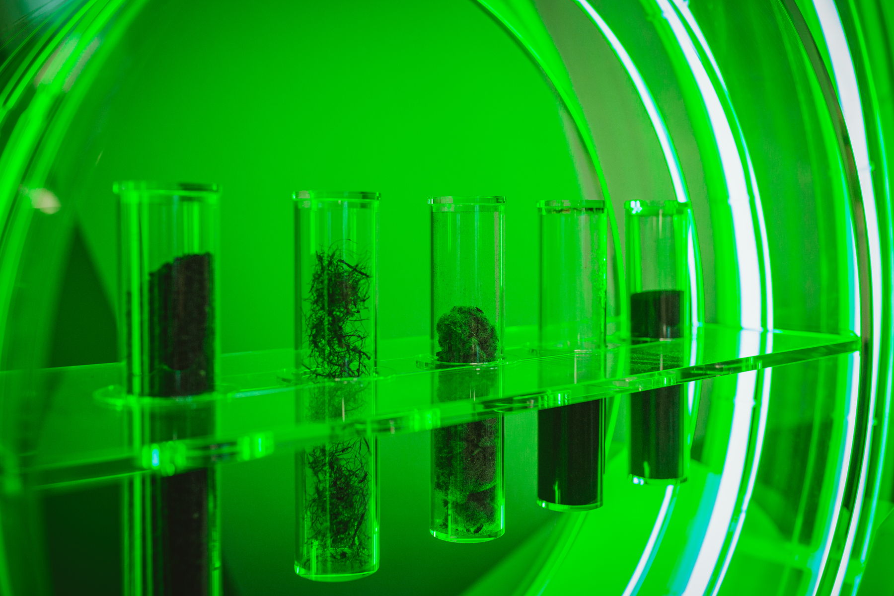 Proben verschiedener Rückgewinnungsstoffe aus dem Pyrolyseprozess: Schritt für Schritt werden wertvolle Rohstoffe wie recovered Carbon Black (rCB) aus Altreifen zurückgewonnen und für neue Produkte aufbereitet. Copyright: Schwalbe | Ralf Bohle GmbH und Pyrum Innovations AG