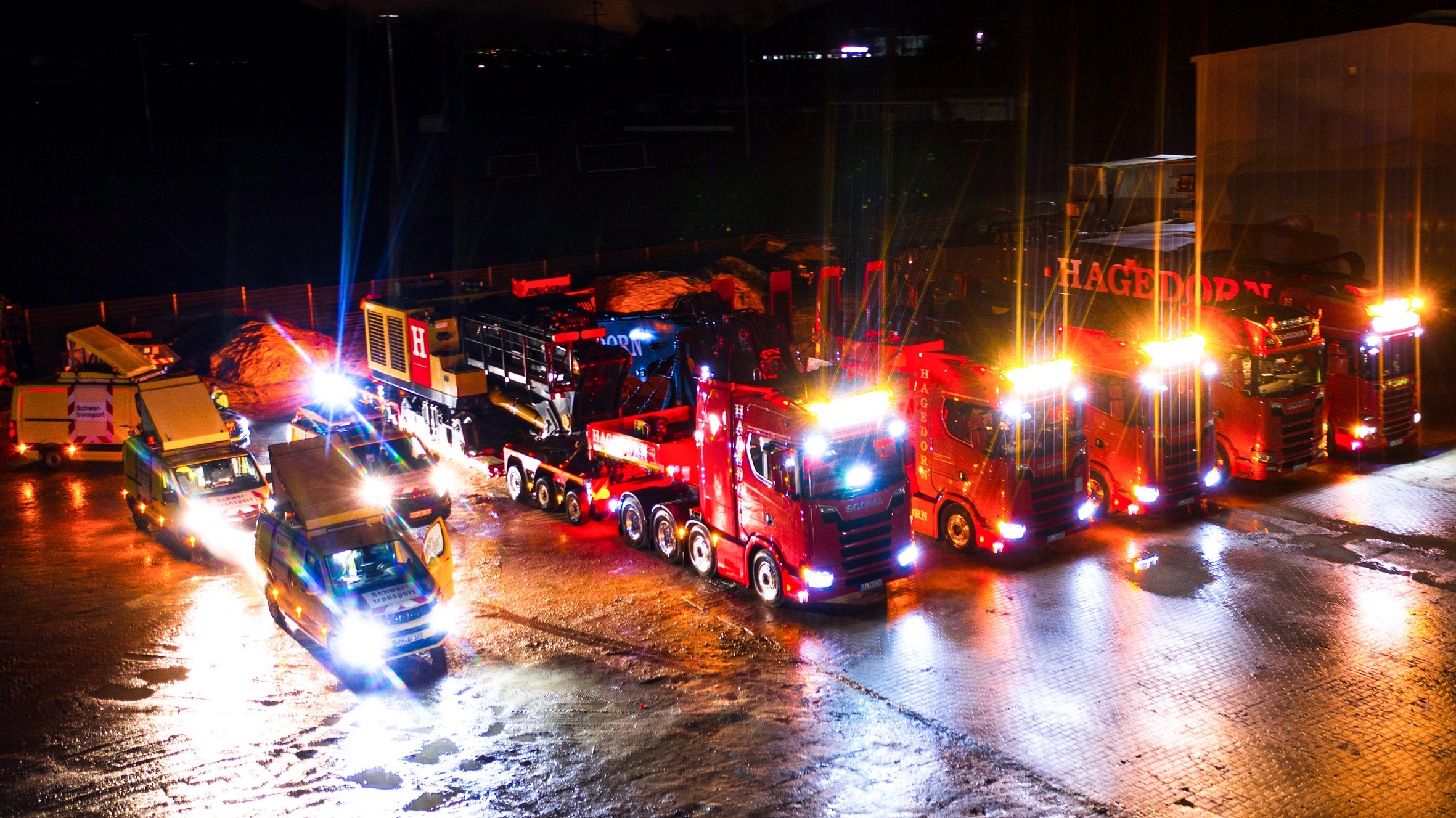 Abfahrt: verteilt auf 9 Schwertransporte trat der KMC1600S die Reise zu seinem ersten Einsatz an. Bild: Kiesel