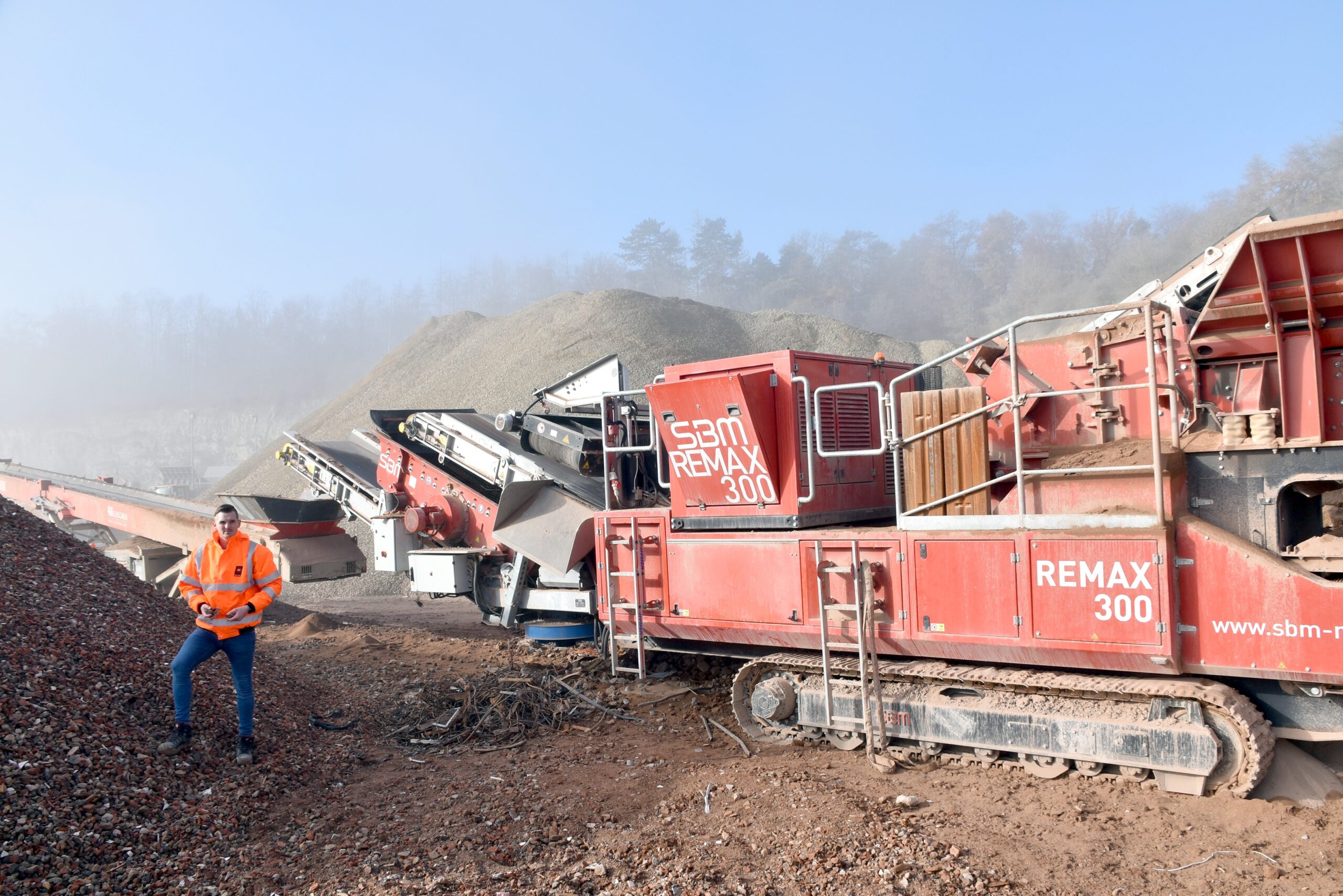 Der kompakte Prallbrecher arbeitet bei Bock am Standort Hünfeld-Roßbach auf engen Raum und sorgt für beste Endprodukte, worauf Steinbruchleiter Julian Busold dauerhaft vertraut. Bild: Moerschen