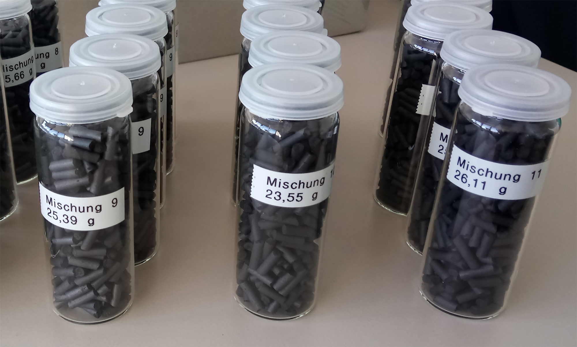 Die hergestellten Komposit-Aktivkohlen weisen im Vergleich zu herkömmlichen granulierten Aktivkohlen eine höhere elektrische Leitfähigkeit auf. (Quelle: Fraunhofer Umsicht)