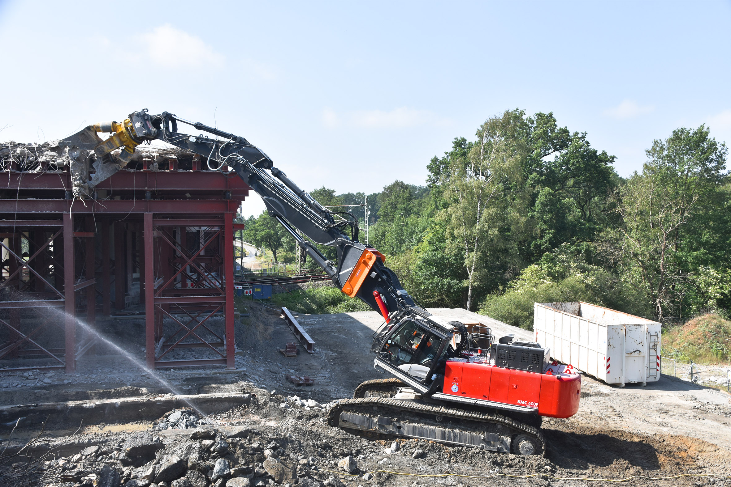 Mit einer umfangreichen Palette an Anbaugeräten beweist sich der KMC 600 an der Dütebrücke. Bild: Kiesel GmbH