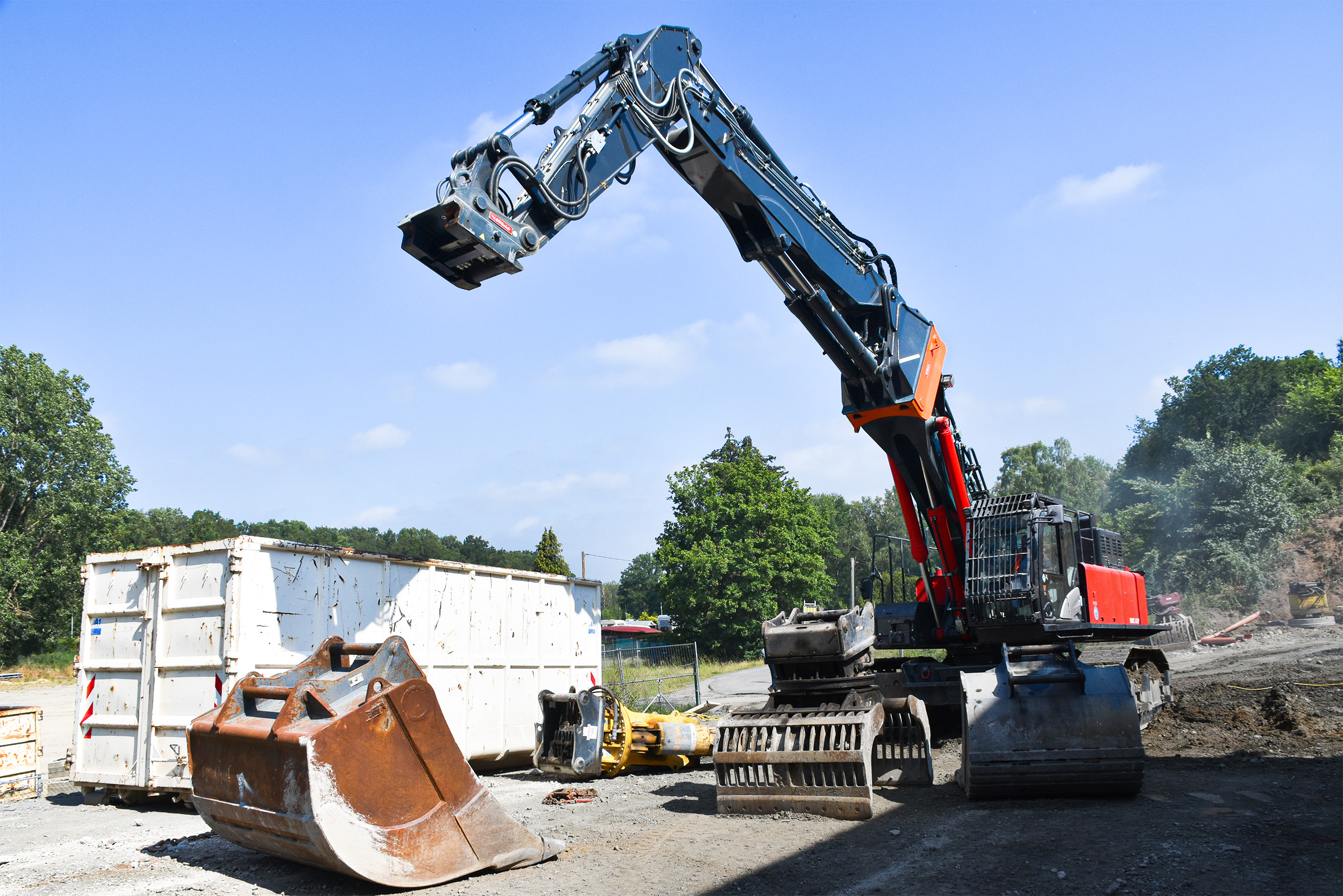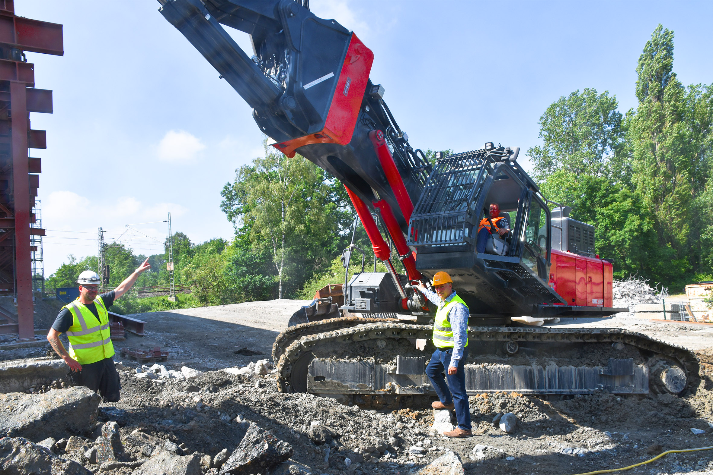 Der KMC 600 hantiert spielend und präzise auf engstem Raum mit der 3-Tonnen-Abbruchschere. Bild: Kiesel GmbH