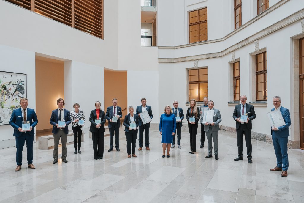 Bundesumweltministerin Svenja Schulze mit den Gewinnern des Papieratlas 2020, Bild: BMU/Sascha Hilgers