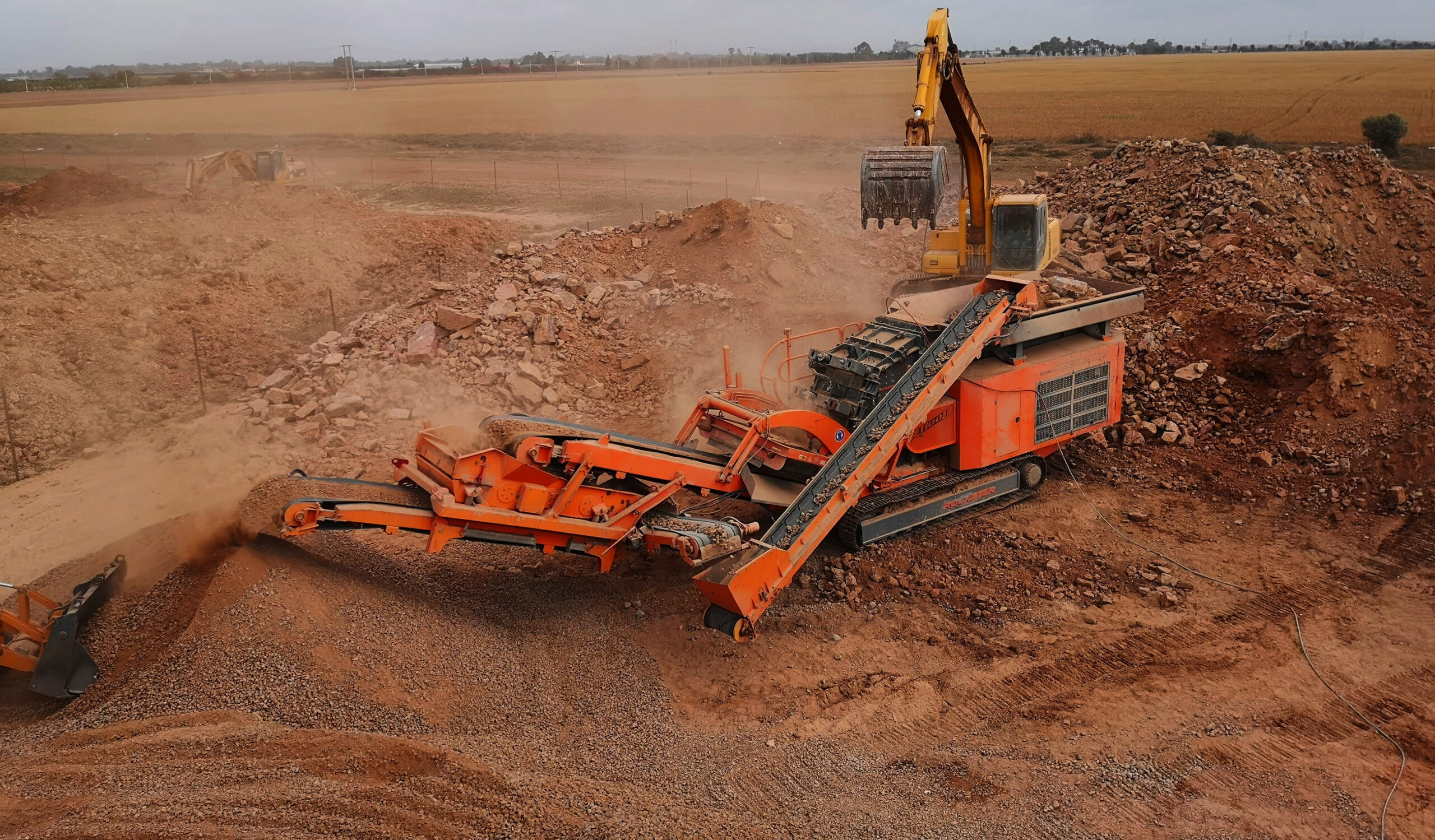Bau eines Wasserspeichers in Mohammedia und Brechen des Materials auf 0/40 mm mit dem Rockster Prallbrecher R1100D. Bild: Rockster