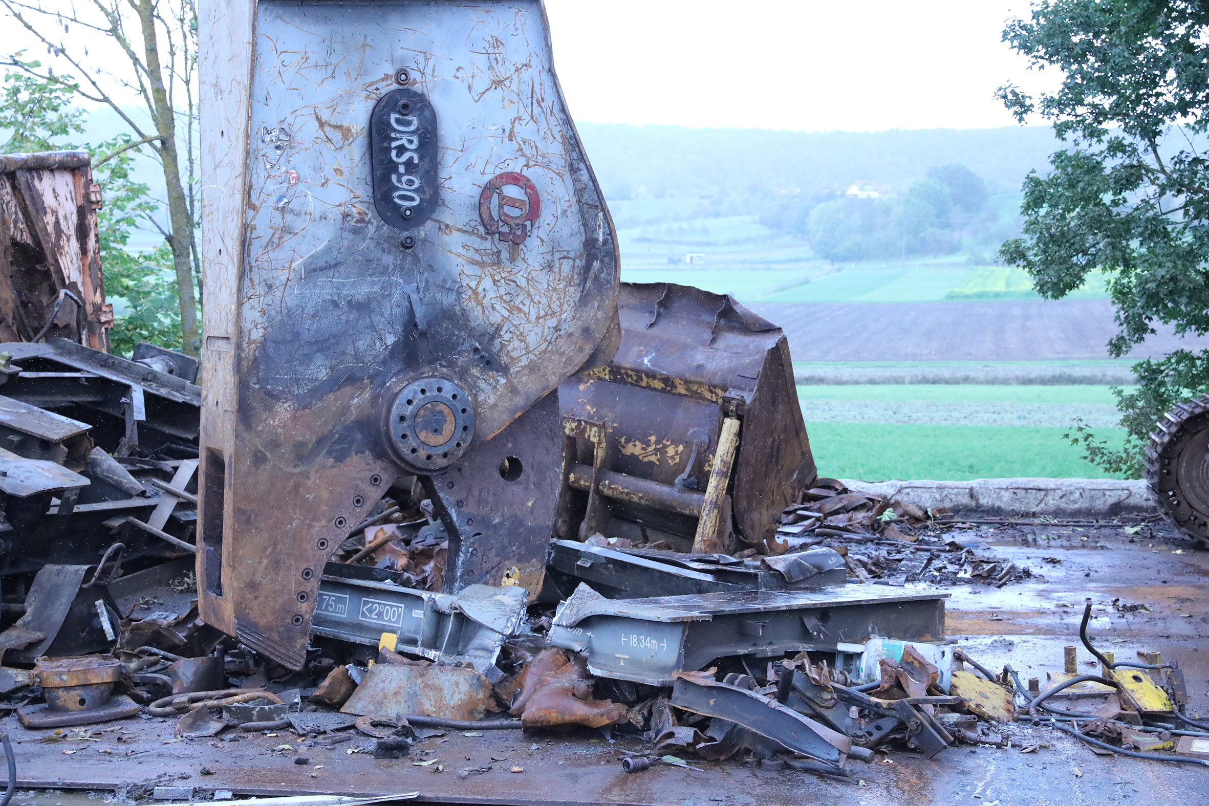 Die Demarec-Schere beißt sich mit bis zu 13.510 kN durchs Metall. Bild: Jasmin Hanf