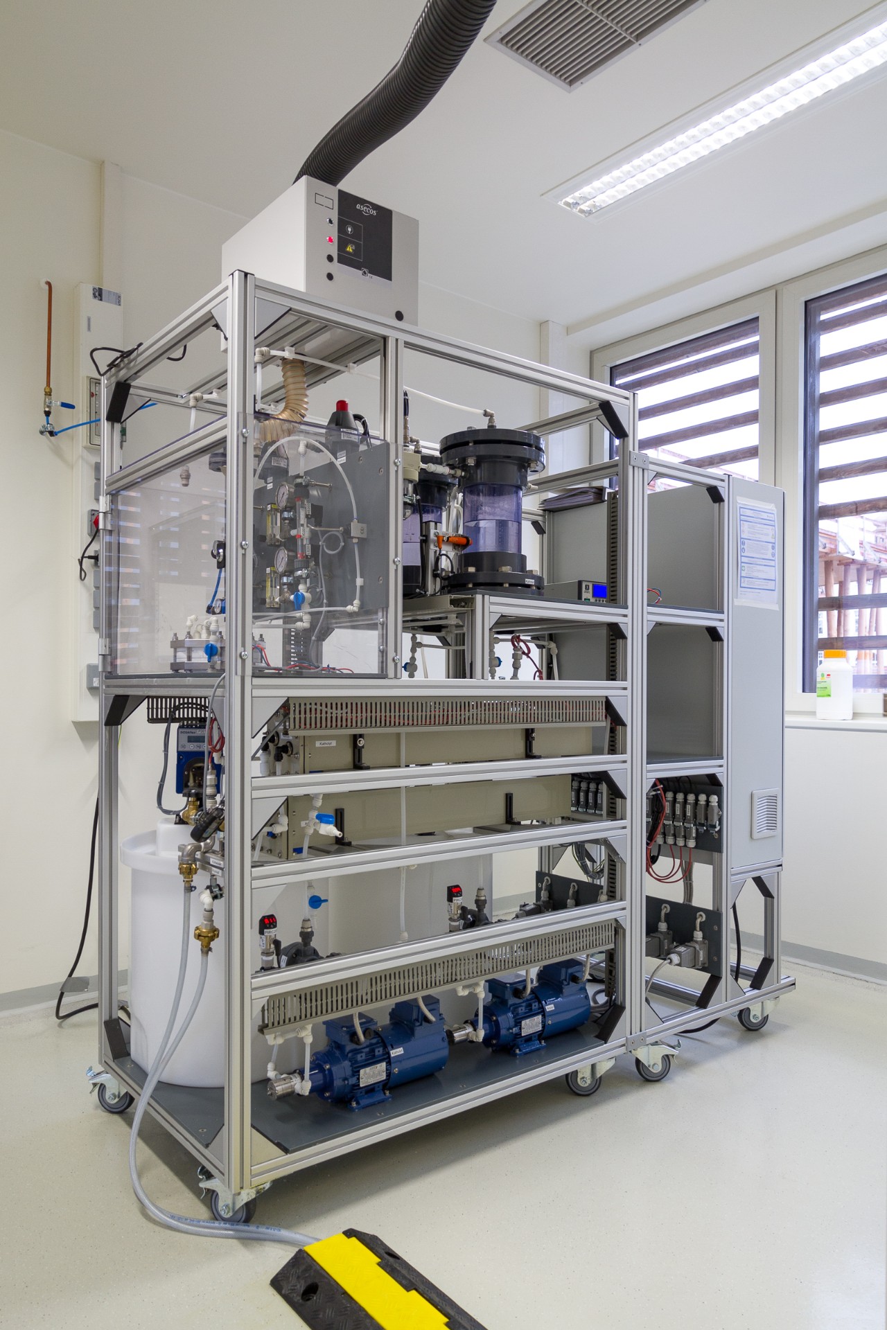 Der im CELBICON-Projekt am Fraunhofer IGB entwickelte Elektrolyseur synthetisiert Ameisensäure aus atmosphärischem CO2. Bild: Fraunhofer IGB