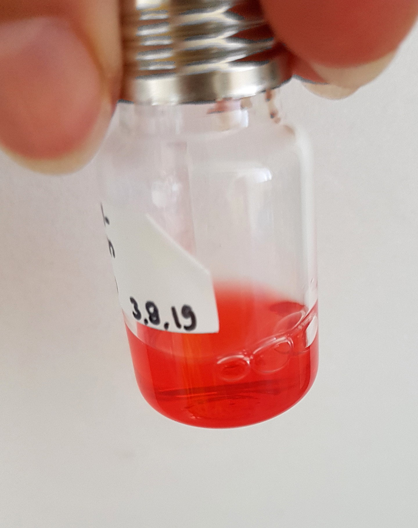 In der auf die Elektrolyse folgenden Fermentation wird Ameisensäure zu einem wertschöpfenden terpenoiden Farbstoff umgesetzt. Bild: Fraunhofer IGB