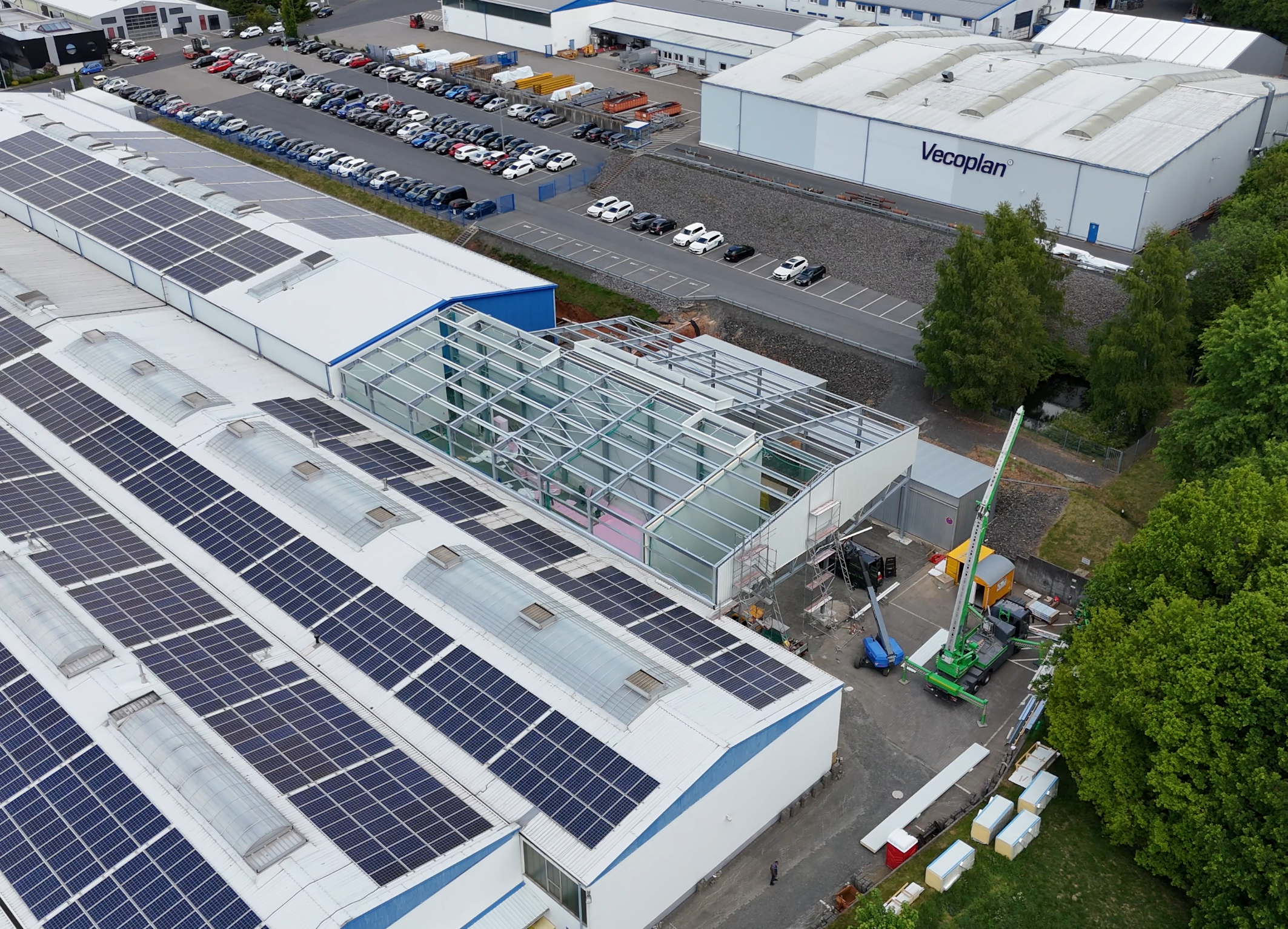 Der Hauptstandort von Vecoplan wird um einen neuen Montagebereich ergänzt und schafft Platz für Großmaschinen. Copyright: Vecoplan AG