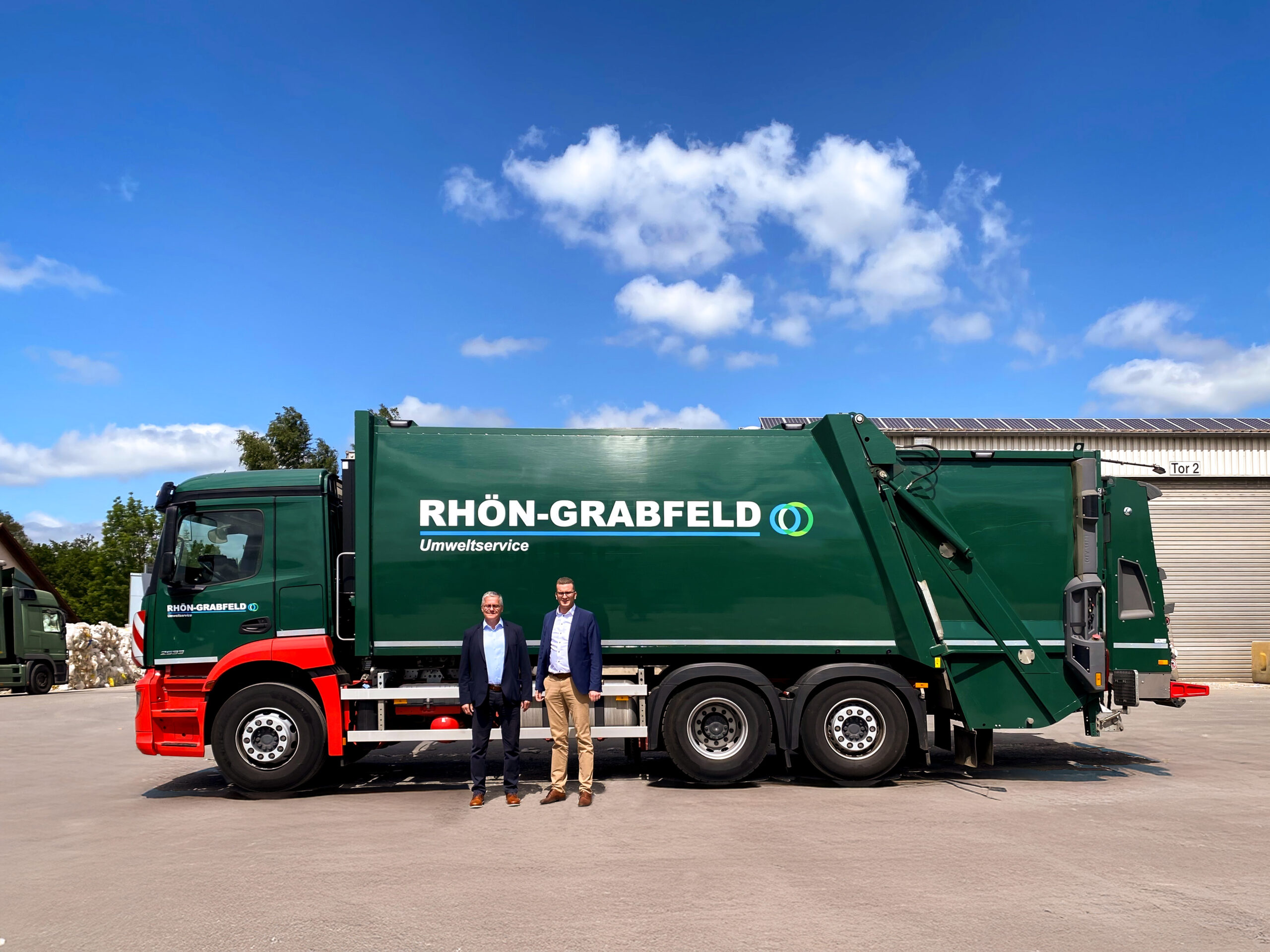 Pasqual Wack, Geschäftsführer Knettenbrech + Gurdulic (rechts) und Gerald Roßhirt, Vorstand des Kommunalunternehmens des Landkreises Rhön-Grabfeld (links). Copyright: Rhön-Grabfeld Umweltservice