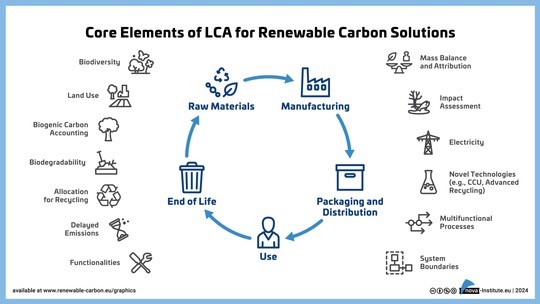 Kernelemente der Ökobilanzen für erneuerbare Kohlenstofflösungen, Quelle: nova-Institut GmbH