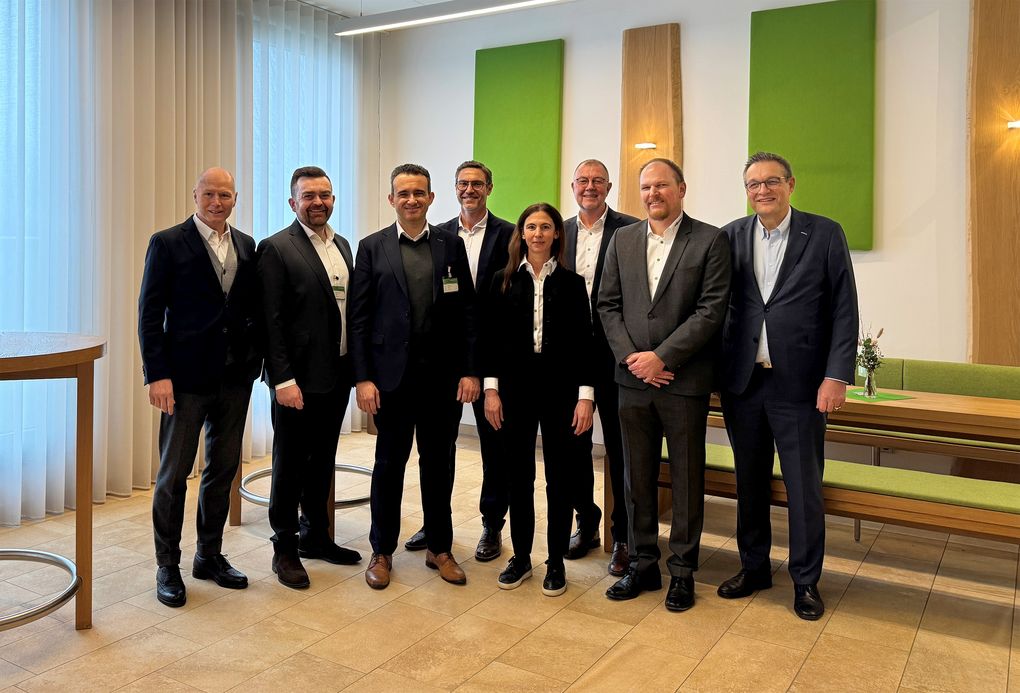v. l. n. r.: Erich Sennebogen, Tomislav Ćurković (Deutz), Thales Maia (Deutz), Dr. Andreas Maurer, Katja Schechterle, Thorsten Resch, Florian Krinner, Jürgen Scheske. Copyright: Sennebogen