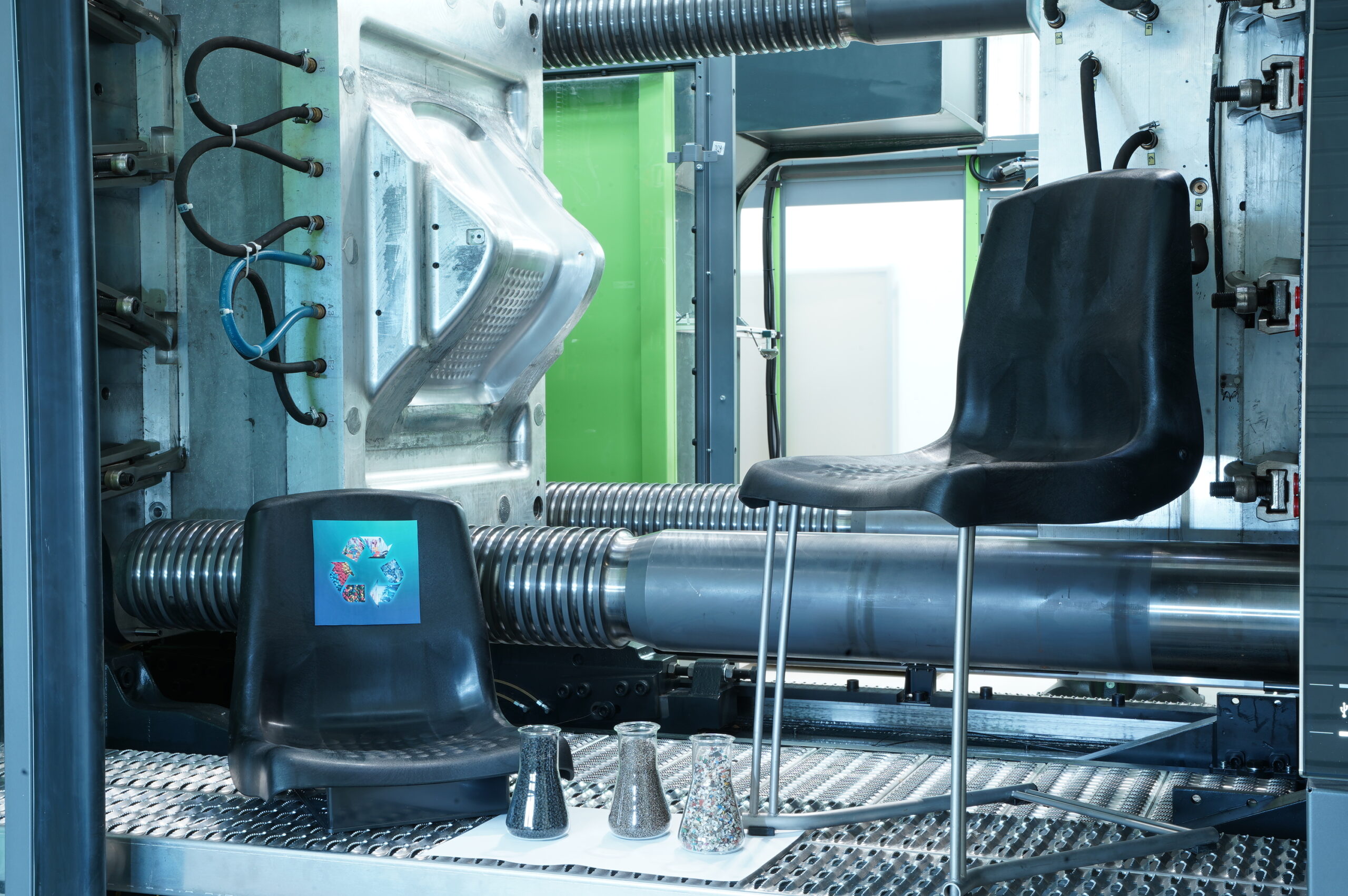 Aus kunststoffhaltigem Abfall wurde im Projekt Polyamid extrahiert, das im Spitzguss zu einer Stuhlschale verarbeitet wurde. Copyright: Fraunhofer IMWS