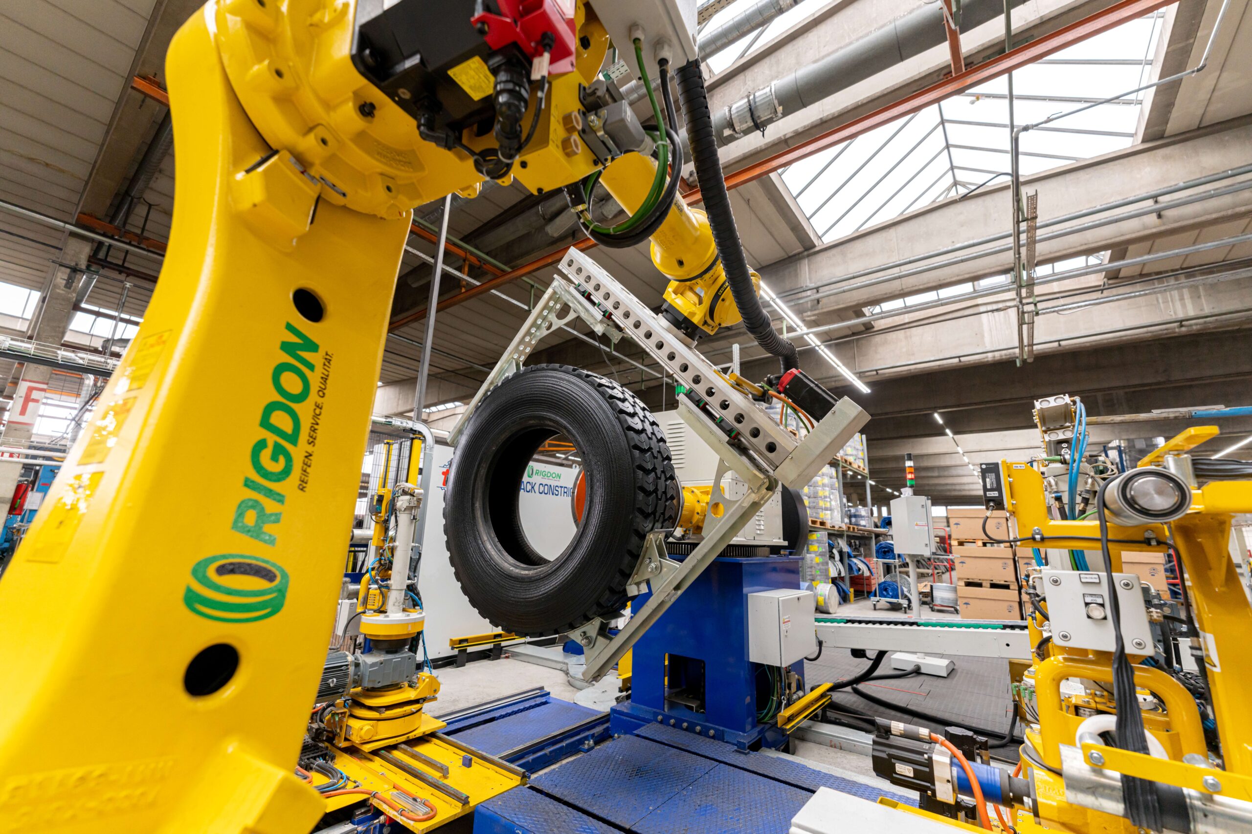 Rigdon runderneuert schon heute vollautomatisch Reifen. Mit der Förderung des BMUV soll am Standort Günzburg nun eine neue Runderneuerungsanlage für Pkw-Reifen gebaut werden. Copyright: Rigdon