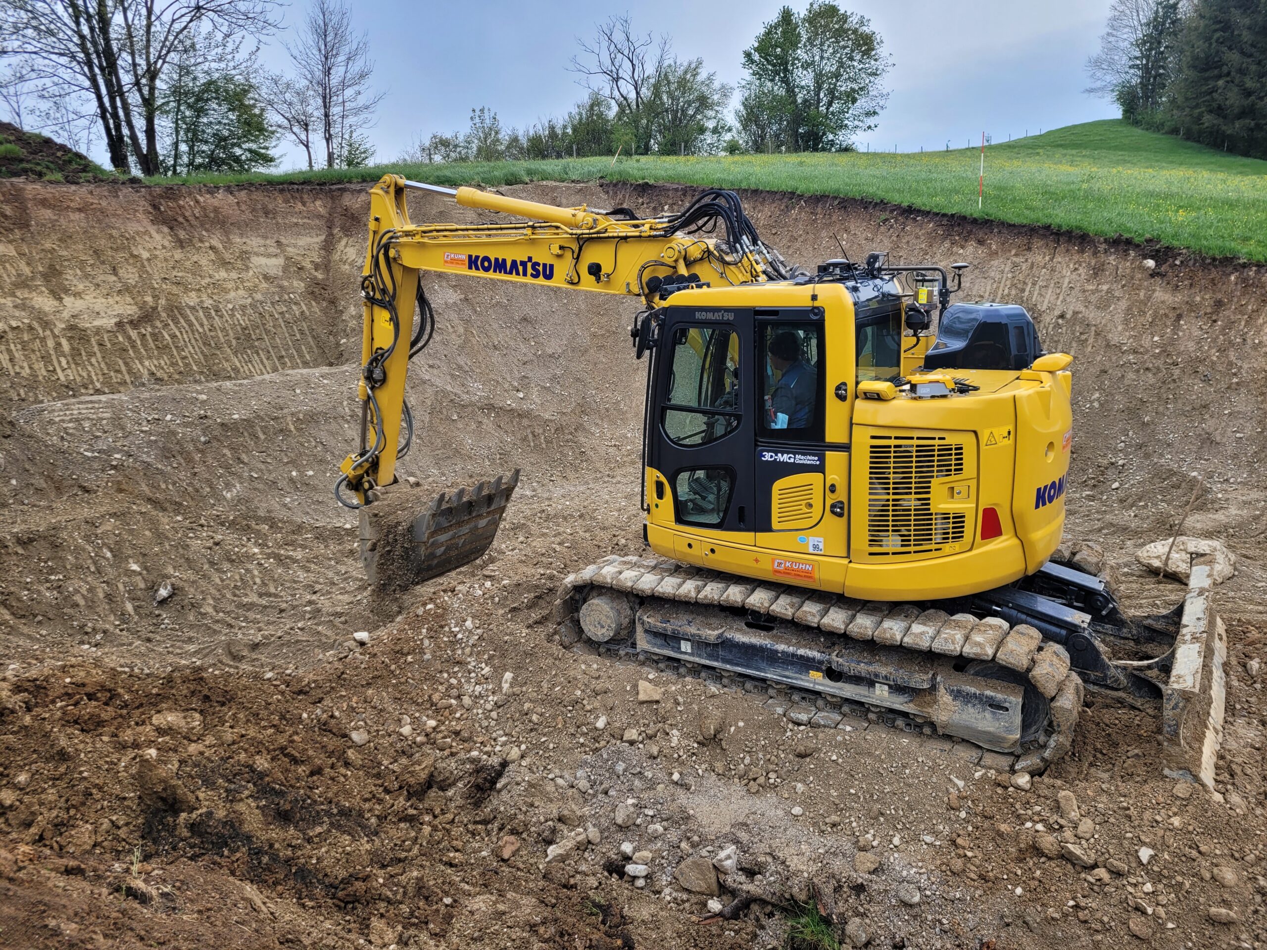 Zusammen mit dem Smart Construction 3D-Machine-Guidance ist der Komatsu PC138US-11 perfekt für das Einsatzgebiet der Froschauer GmbH. Copyright: Kuhn Baumaschinen Deutschland GmbH