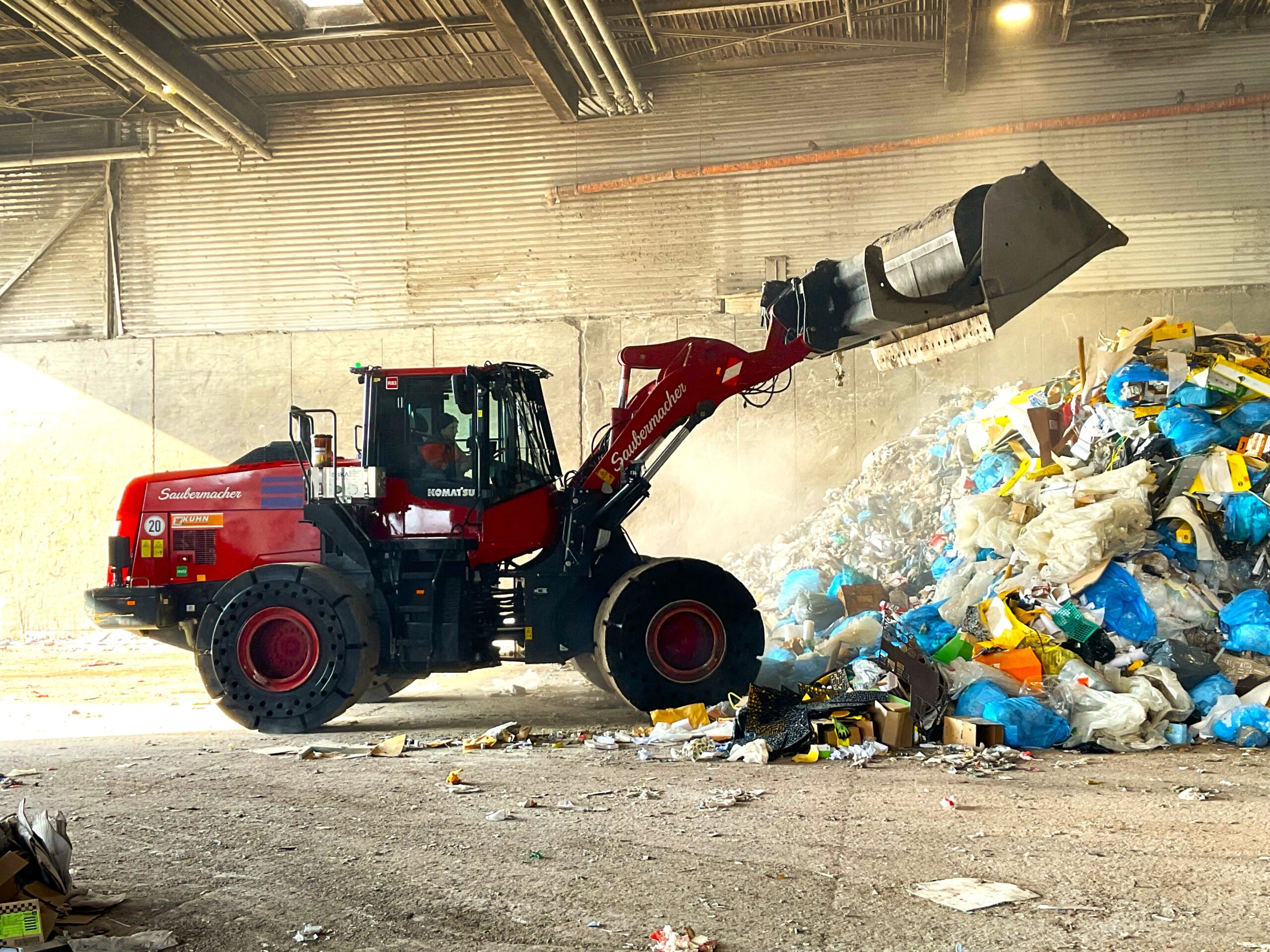 Der WA380-8E0 für Saubermacher wurde zudem mit Vollelastikreifen und einem Schnellwechsler mit Hochkippschaufel ausgestattet. Copyright: Komatsu